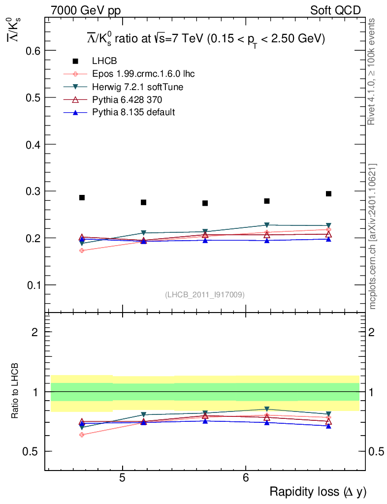 Soft QCD (inelastic) : Identified Particles : Ratios : Λbar/K0S vs |Δy|