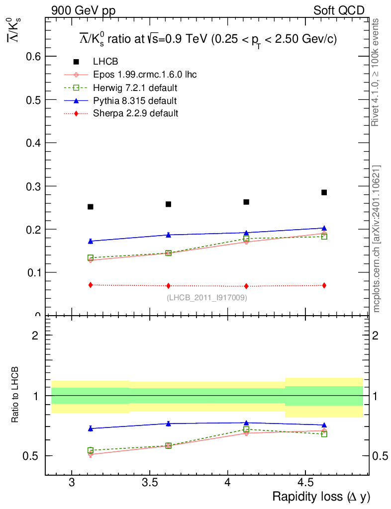 Soft QCD (inelastic) : Identified Particles : Ratios : Λbar/K0S vs |Δy|