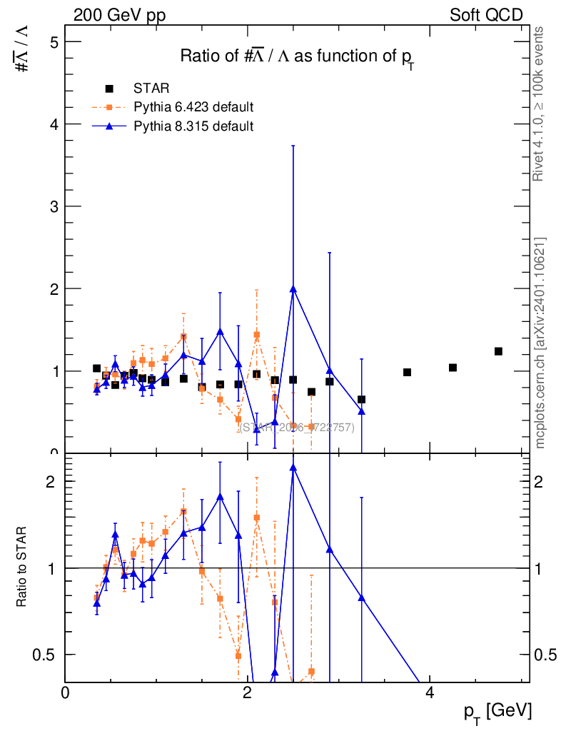 Soft QCD (inelastic) : Identified Particles : Ratios : Λbar/Λ vs pT