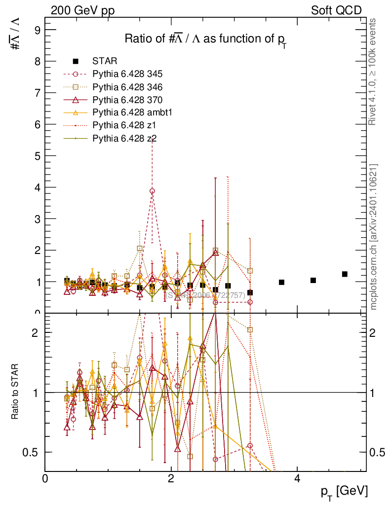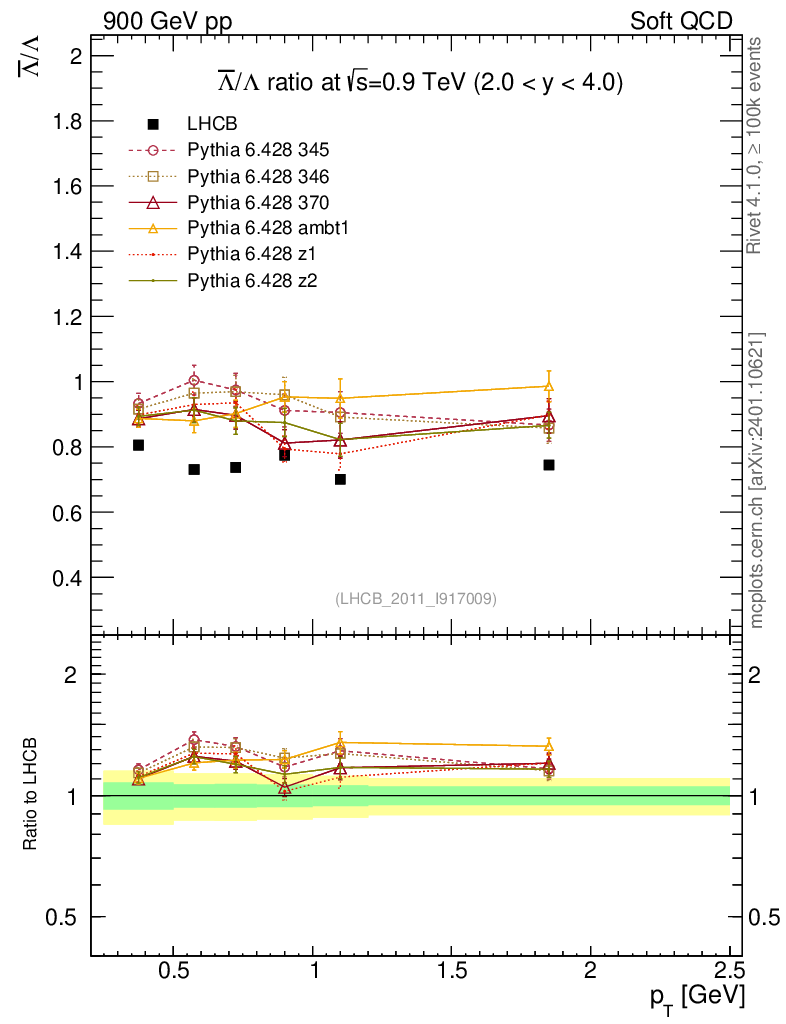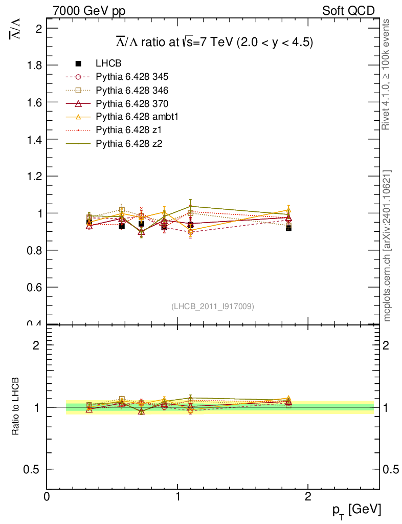 Soft QCD (inelastic) : Identified Particles : Ratios : Λbar/Λ vs pT