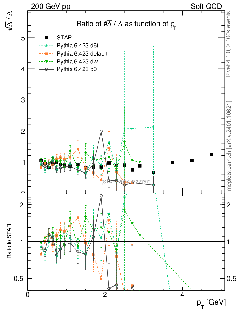 Soft QCD (inelastic) : Identified Particles : Ratios : Λbar/Λ vs pT