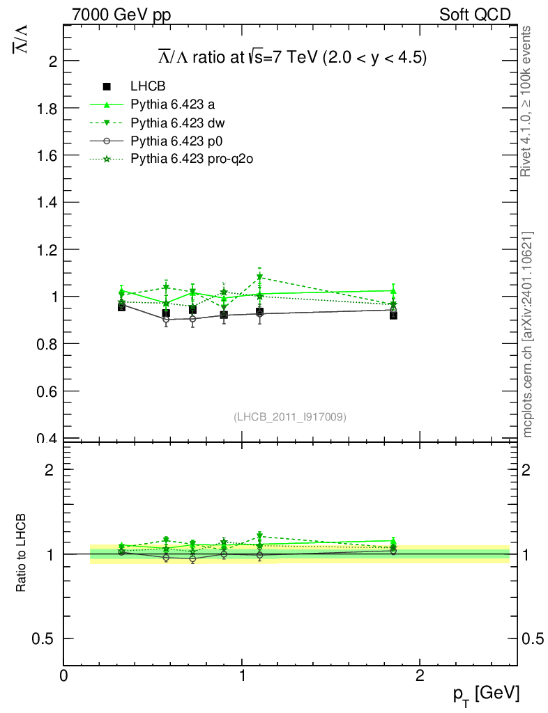 Soft QCD (inelastic) : Identified Particles : Ratios : Λbar/Λ vs pT