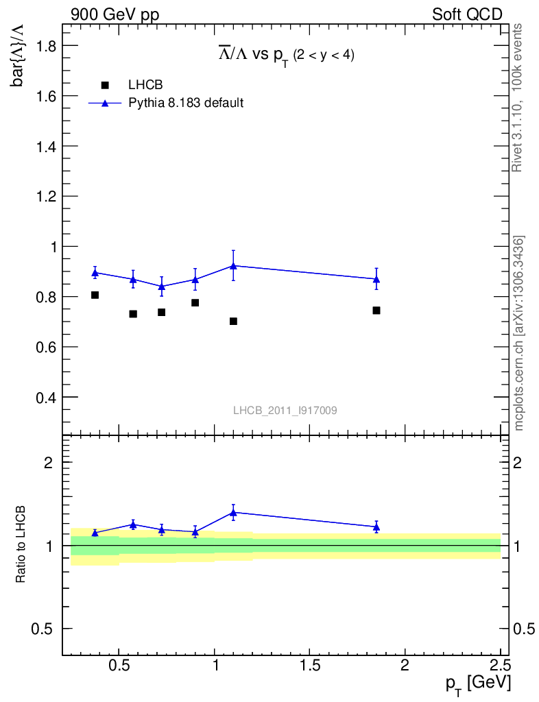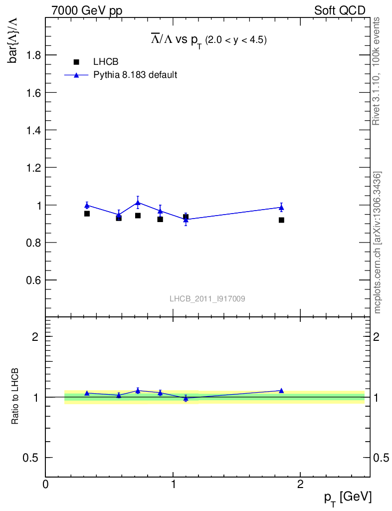 Soft QCD (inelastic) : Identified Particles : Ratios : Λbar/Λ vs pT