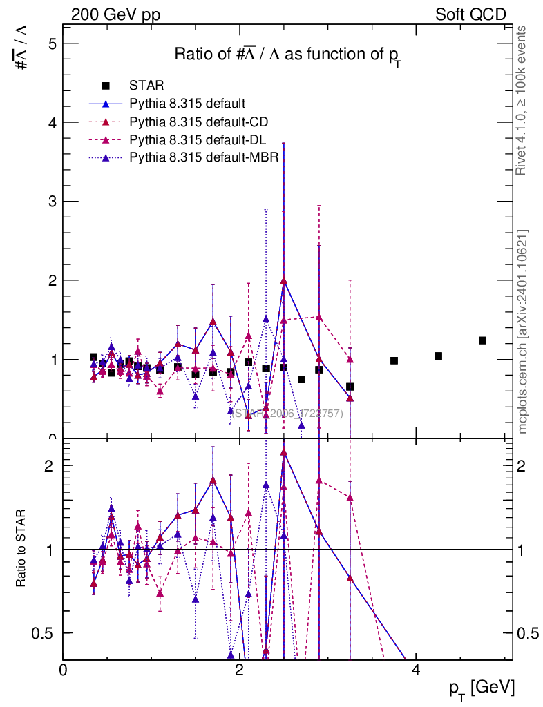 Soft QCD (inelastic) : Identified Particles : Ratios : Λbar/Λ vs pT
