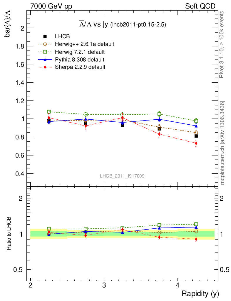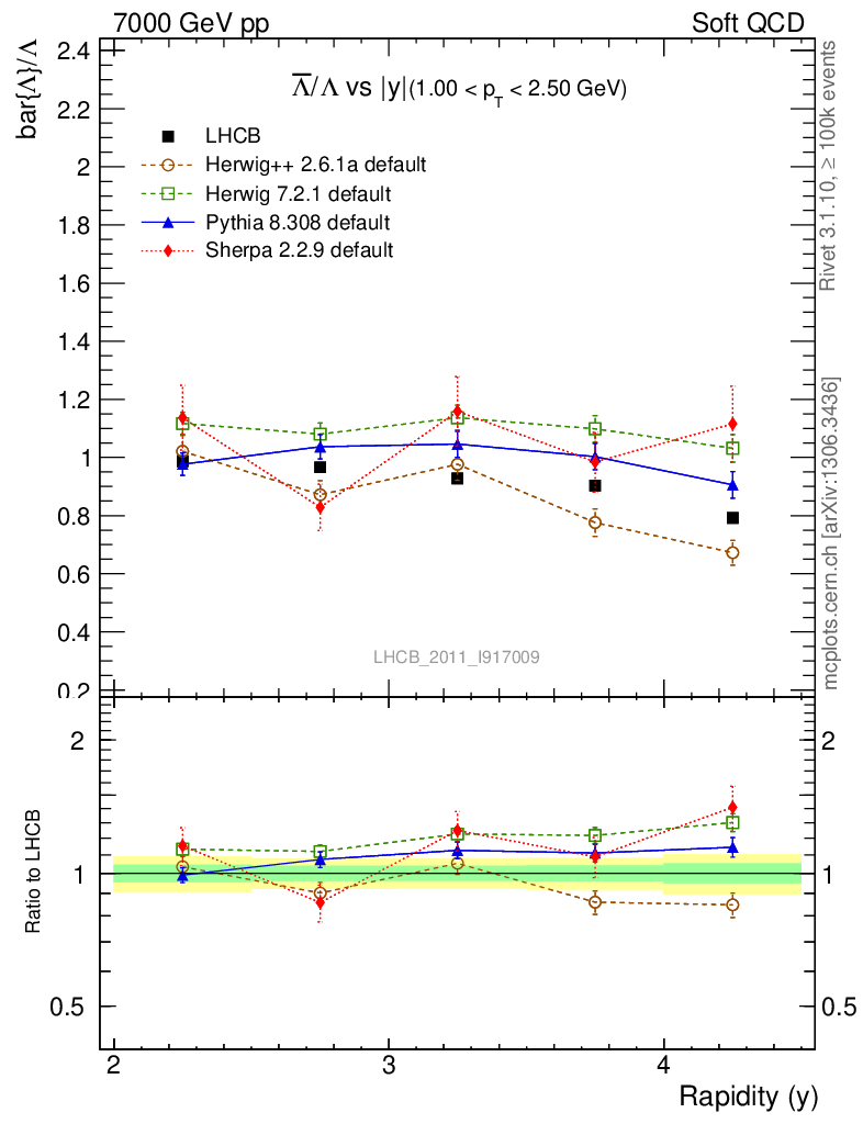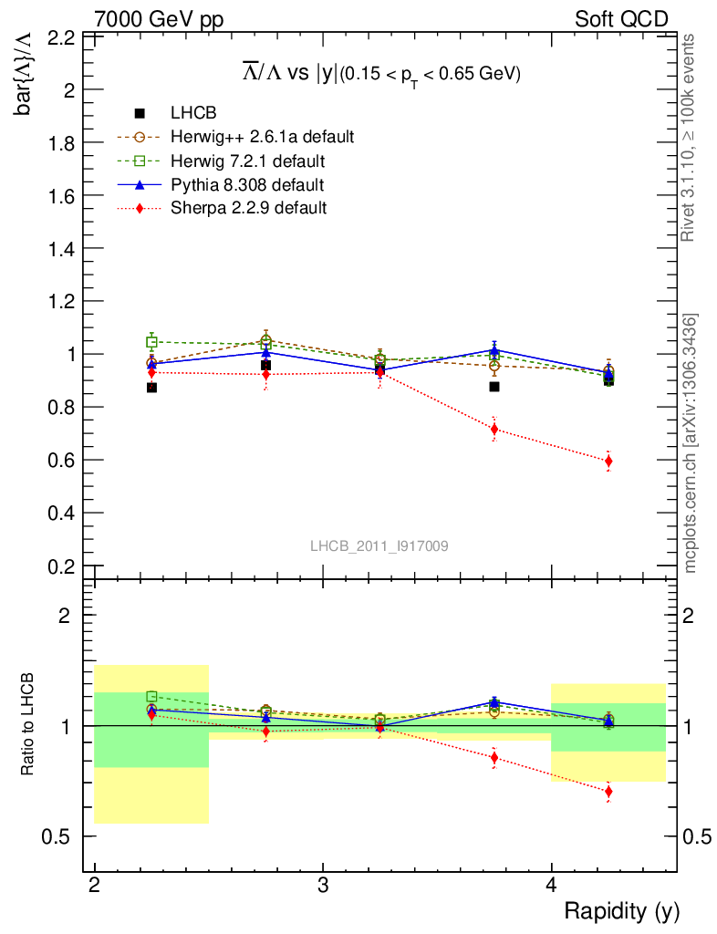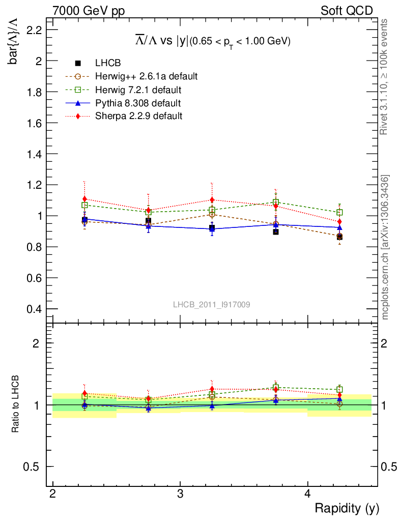 Soft QCD (inelastic) : Identified Particles : Ratios : Λbar/Λ vs |y|