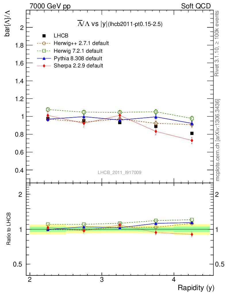 Soft QCD (inelastic) : Identified Particles : Ratios : Λbar/Λ vs |y|