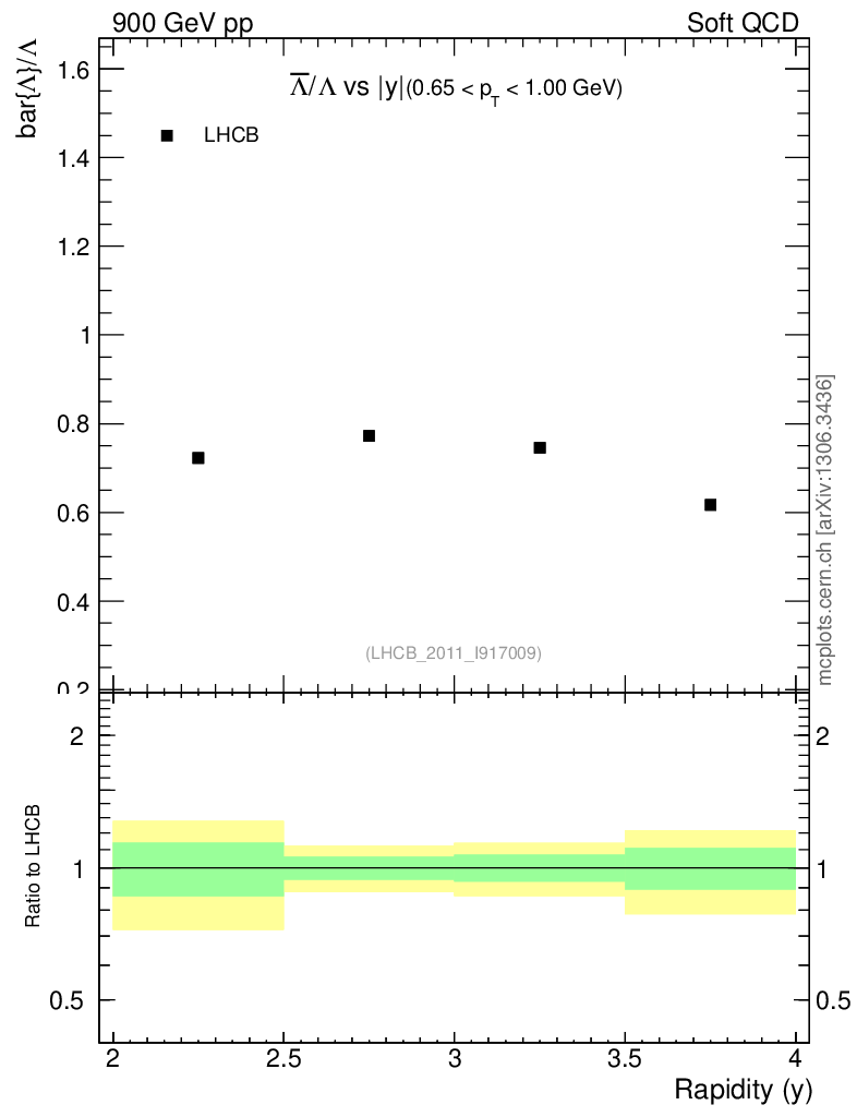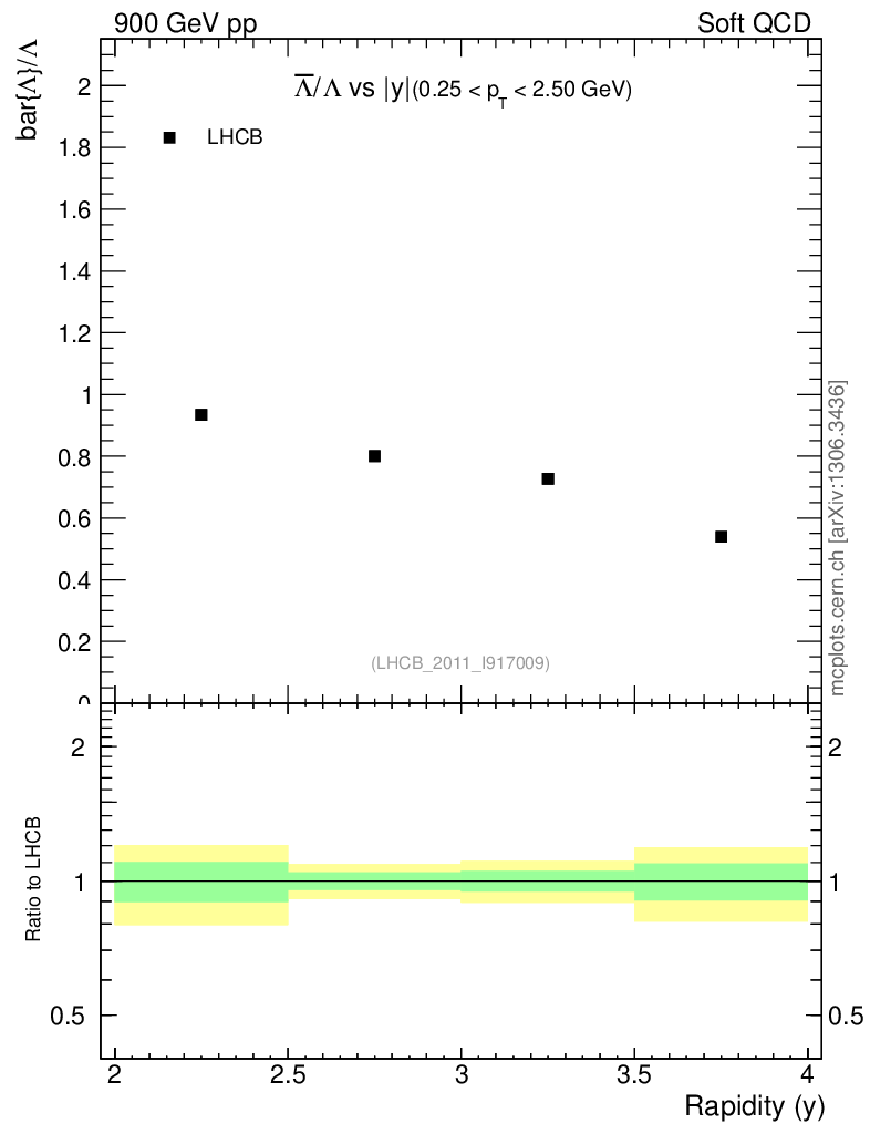 Soft QCD (inelastic) : Identified Particles : Ratios : Λbar/Λ vs |y|