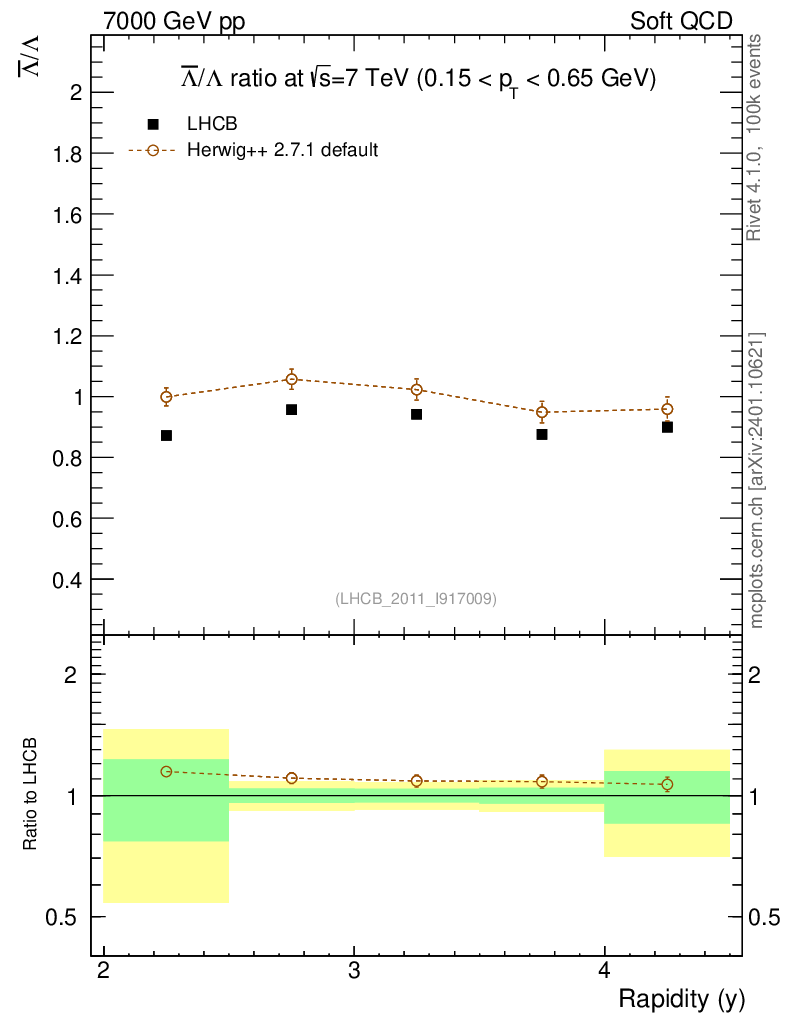 Soft QCD (inelastic) : Identified Particles : Ratios : Λbar/Λ vs |y|