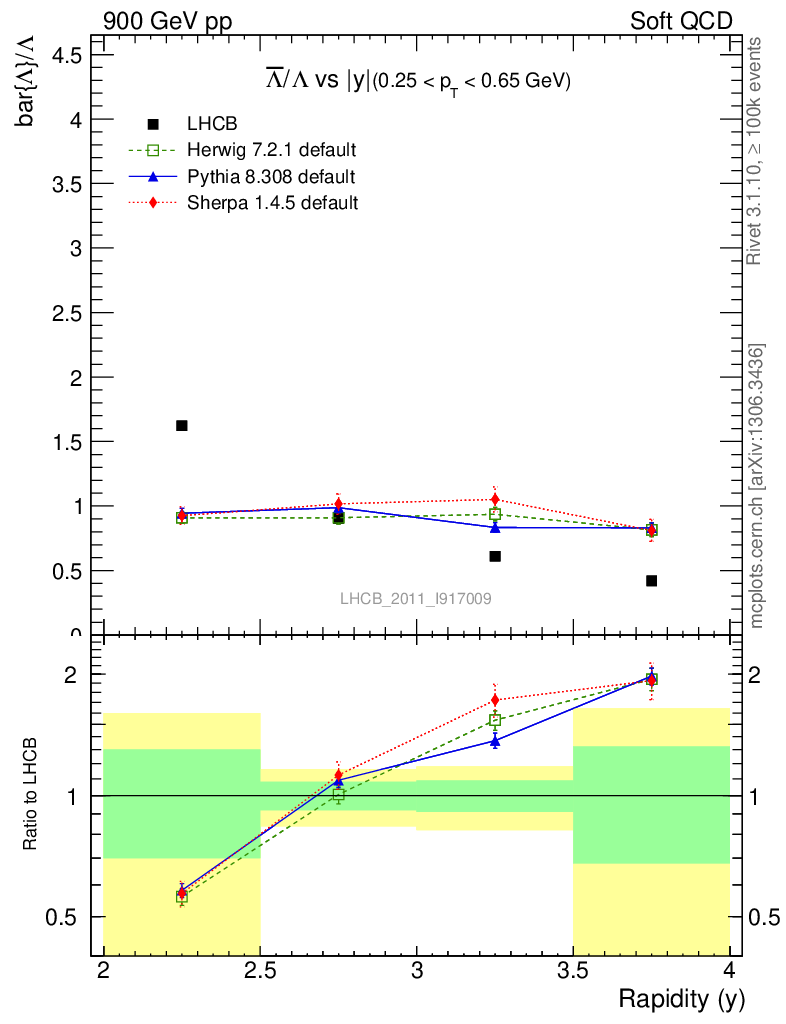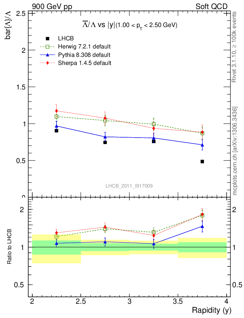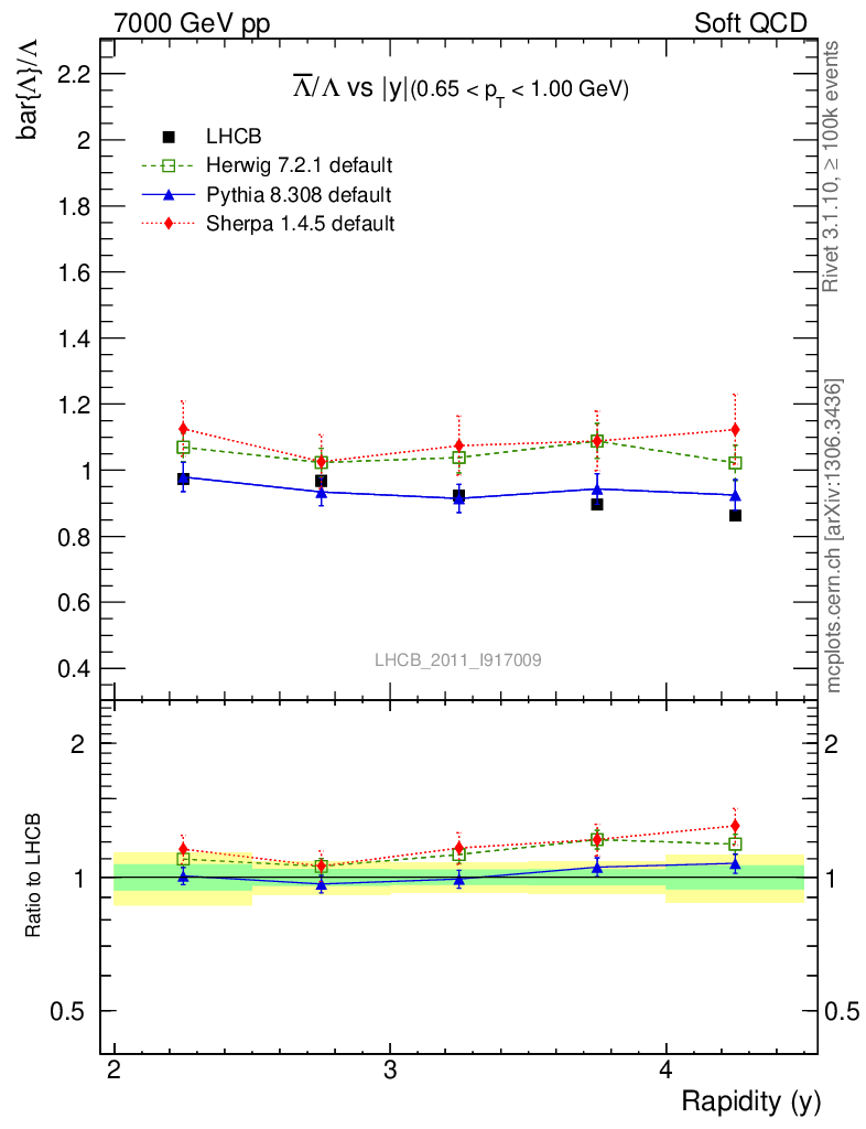 Soft QCD (inelastic) : Identified Particles : Ratios : Λbar/Λ vs |y|