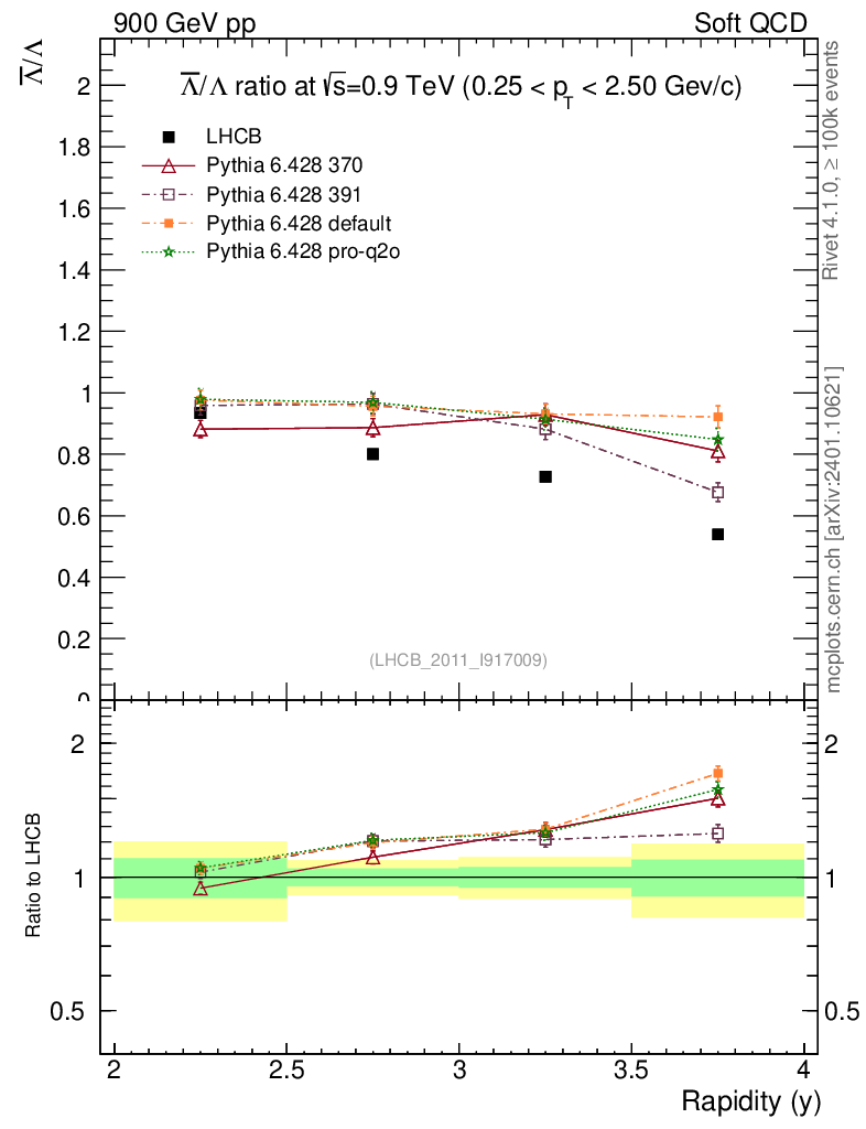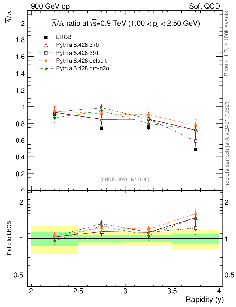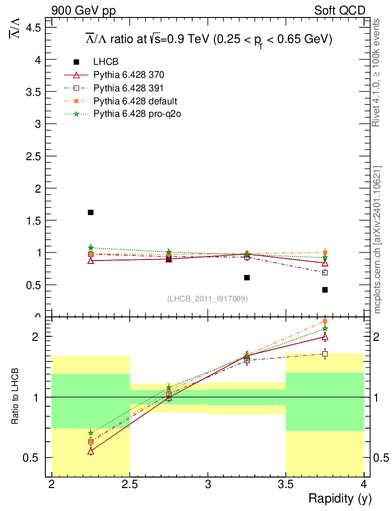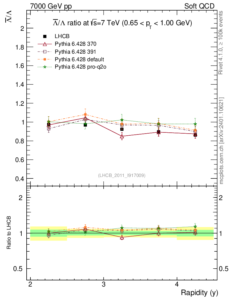 Soft QCD (inelastic) : Identified Particles : Ratios : Λbar/Λ vs |y|