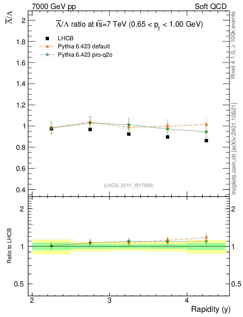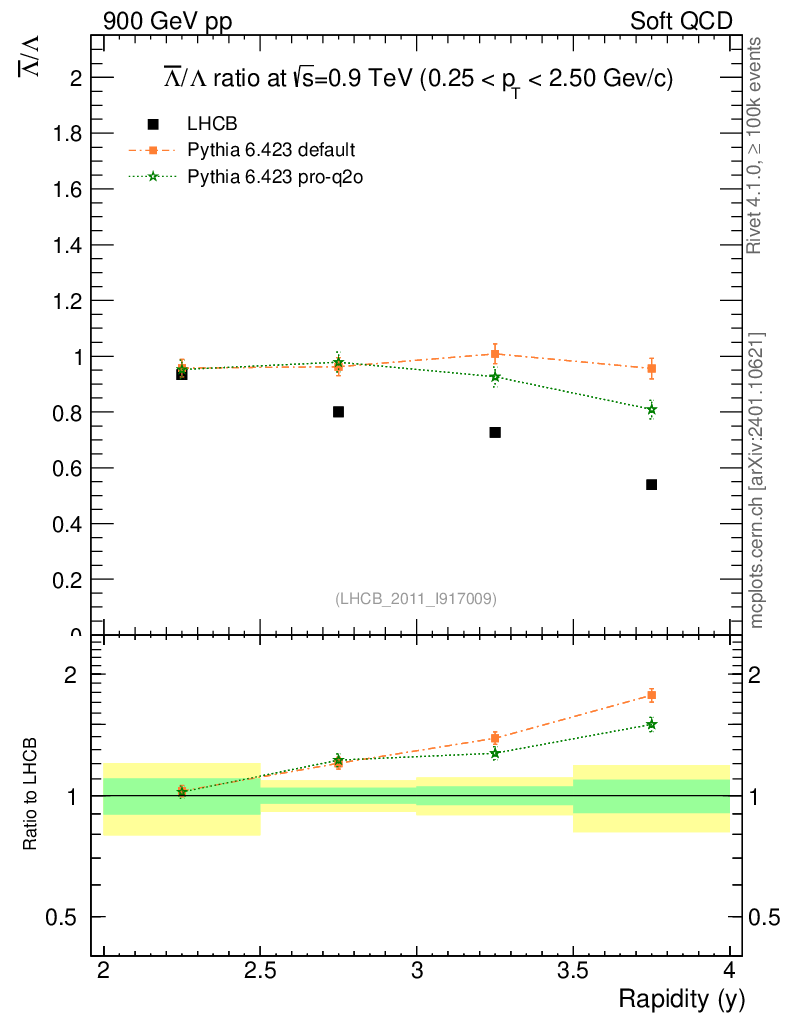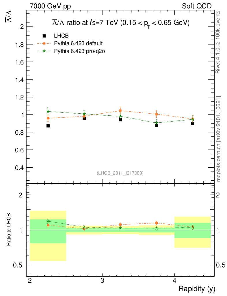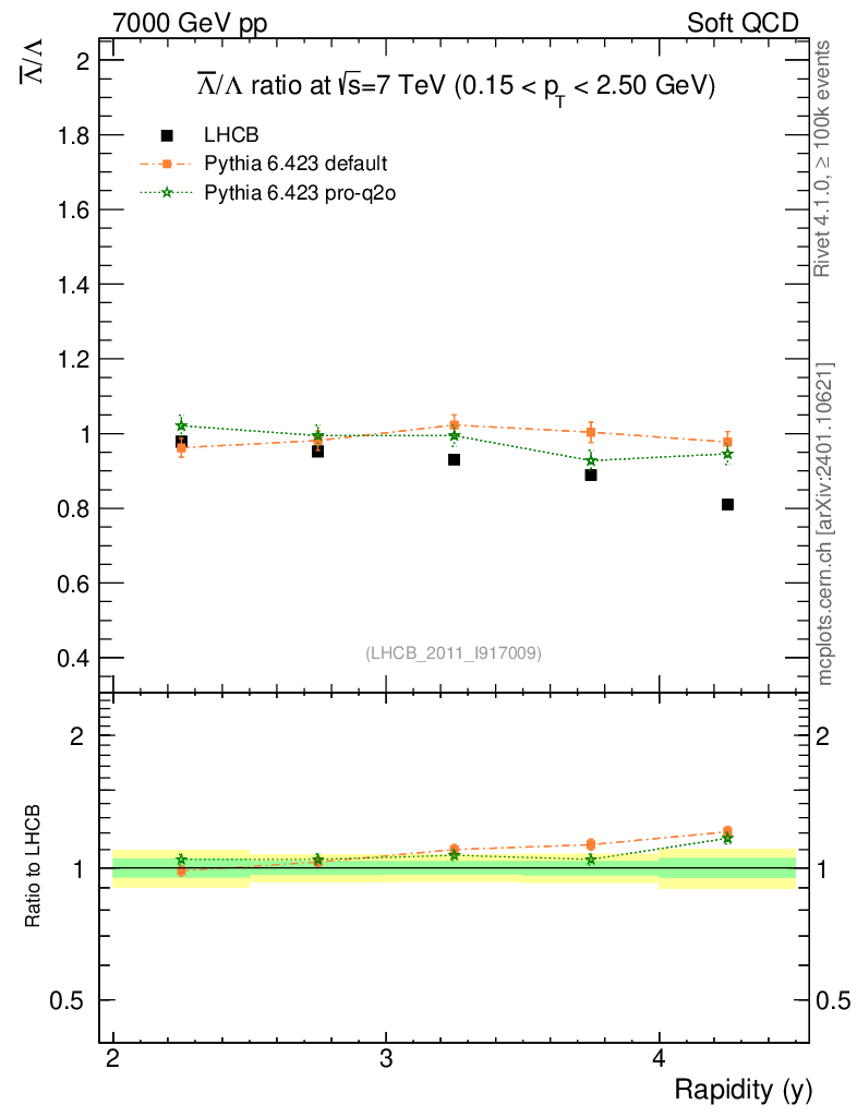 Soft QCD (inelastic) : Identified Particles : Ratios : Λbar/Λ vs |y|