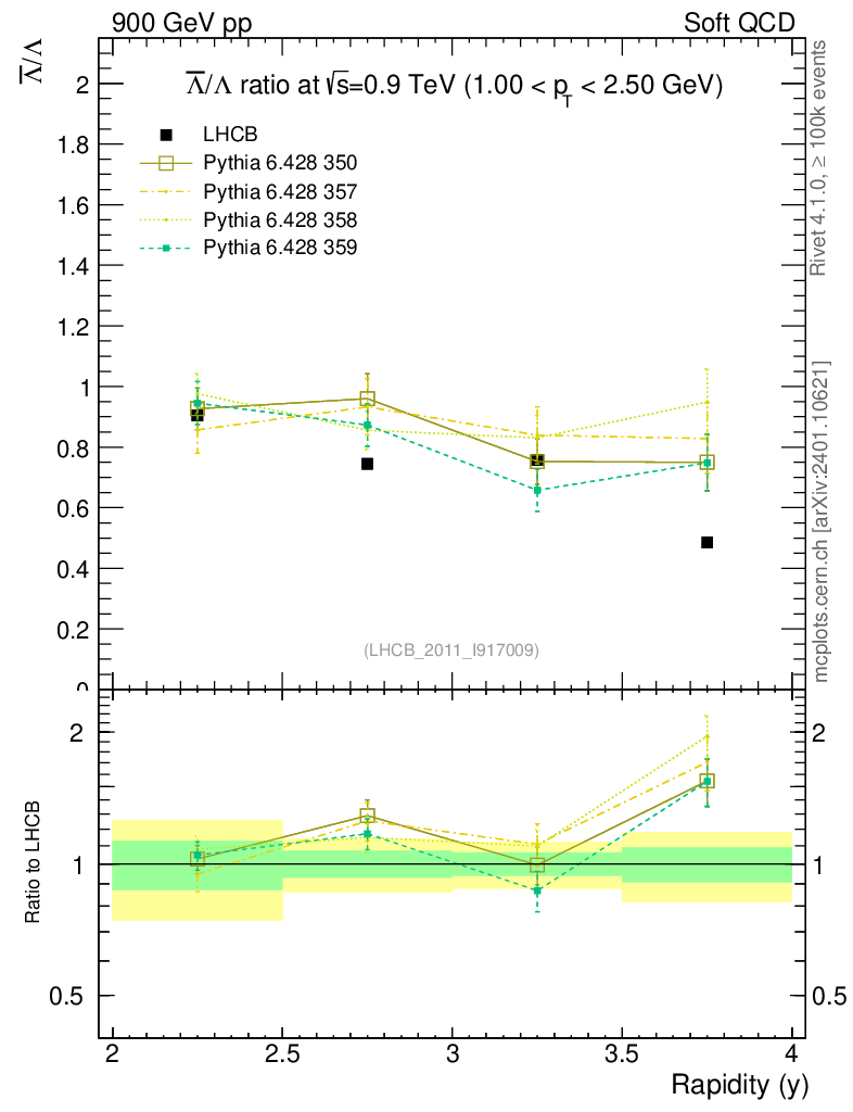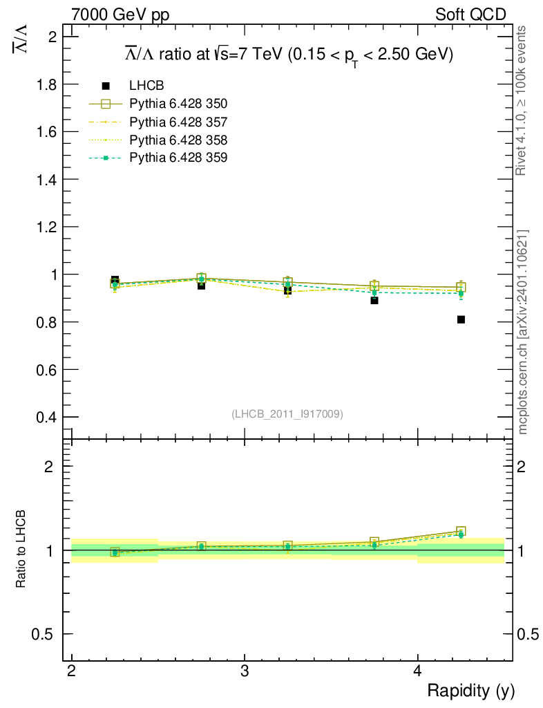 Soft QCD (inelastic) : Identified Particles : Ratios : Λbar/Λ vs |y|