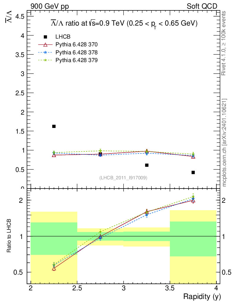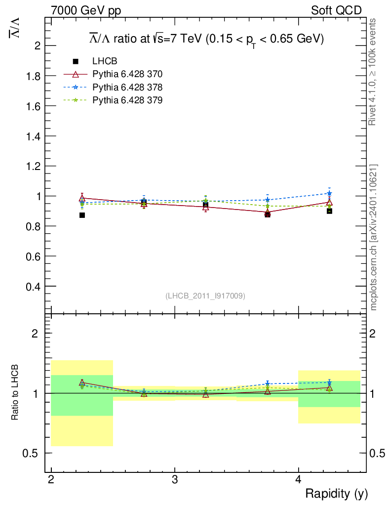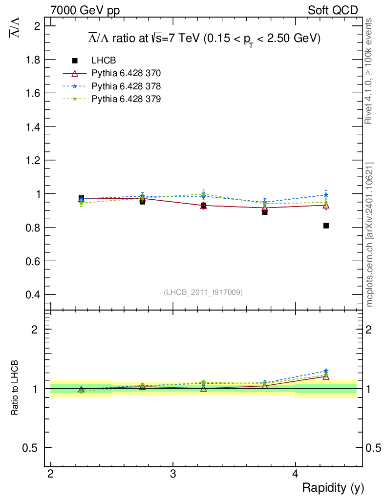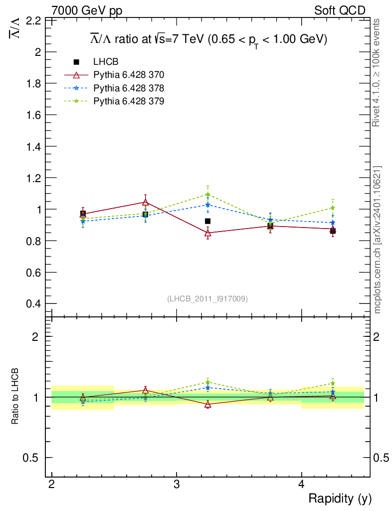 Soft QCD (inelastic) : Identified Particles : Ratios : Λbar/Λ vs |y|