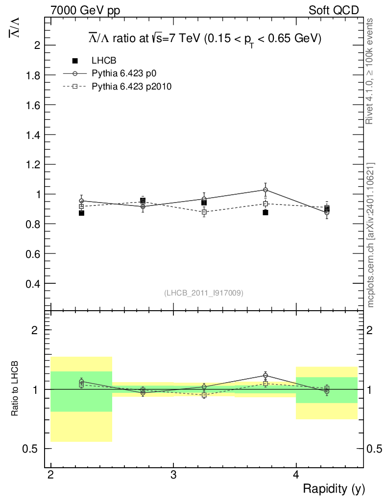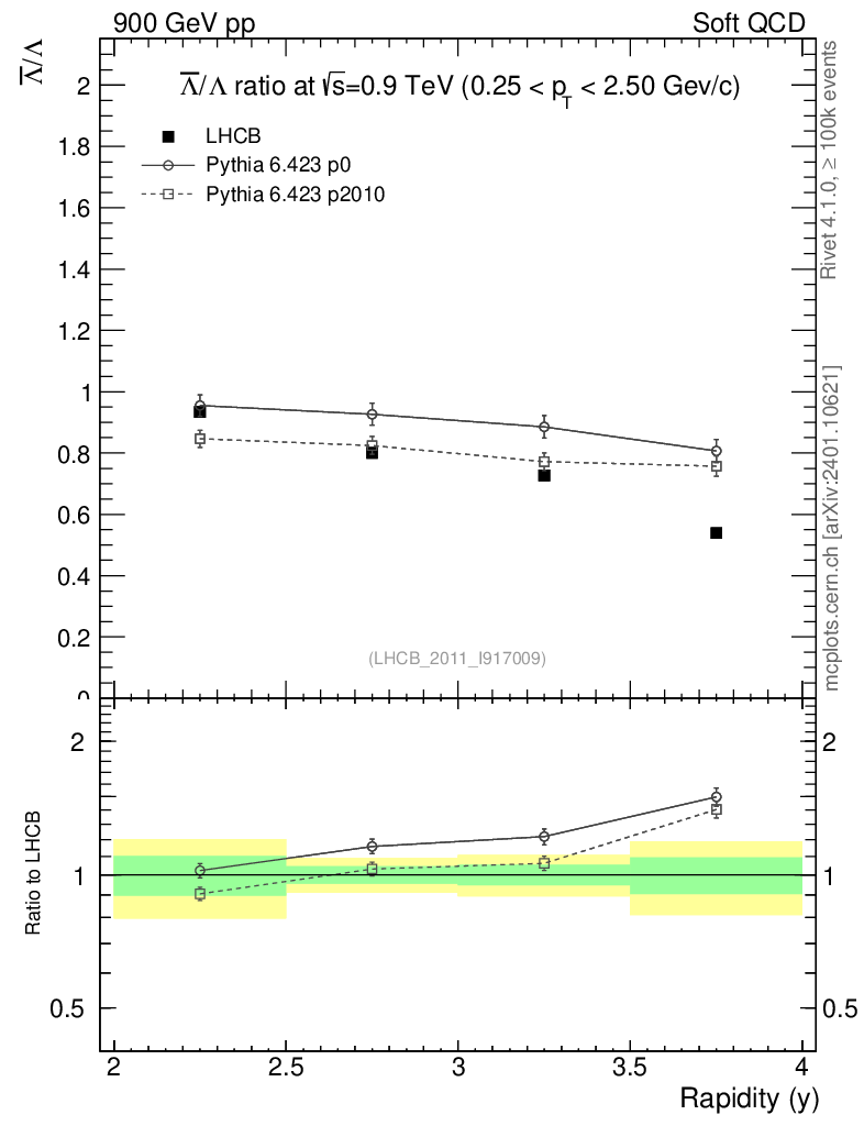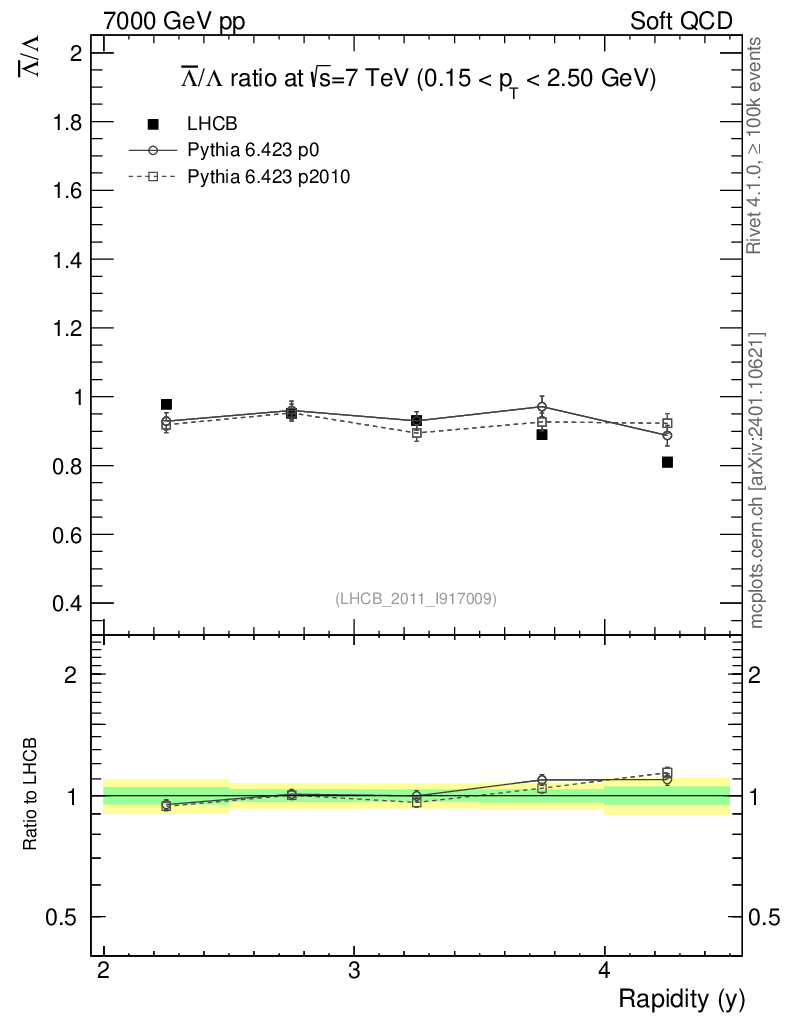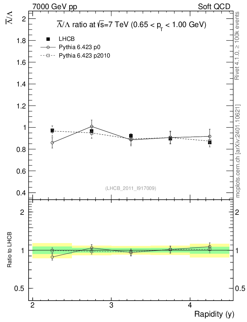 Soft QCD (inelastic) : Identified Particles : Ratios : Λbar/Λ vs |y|