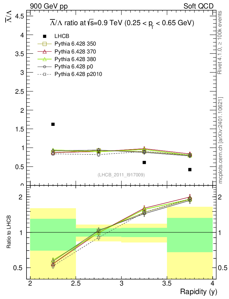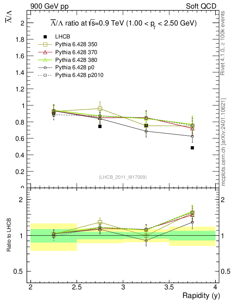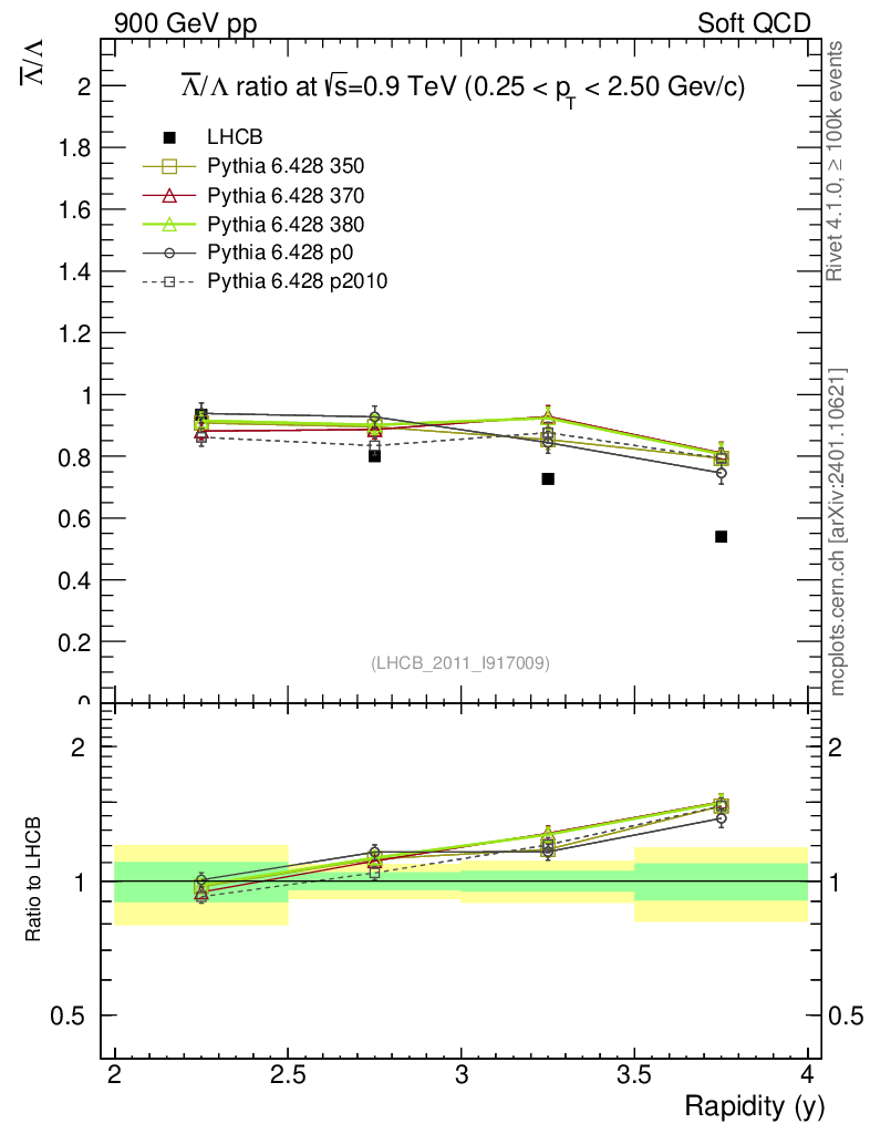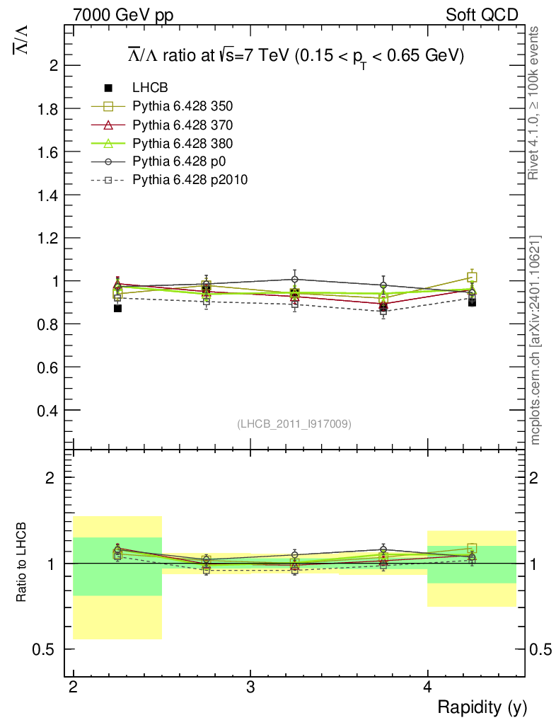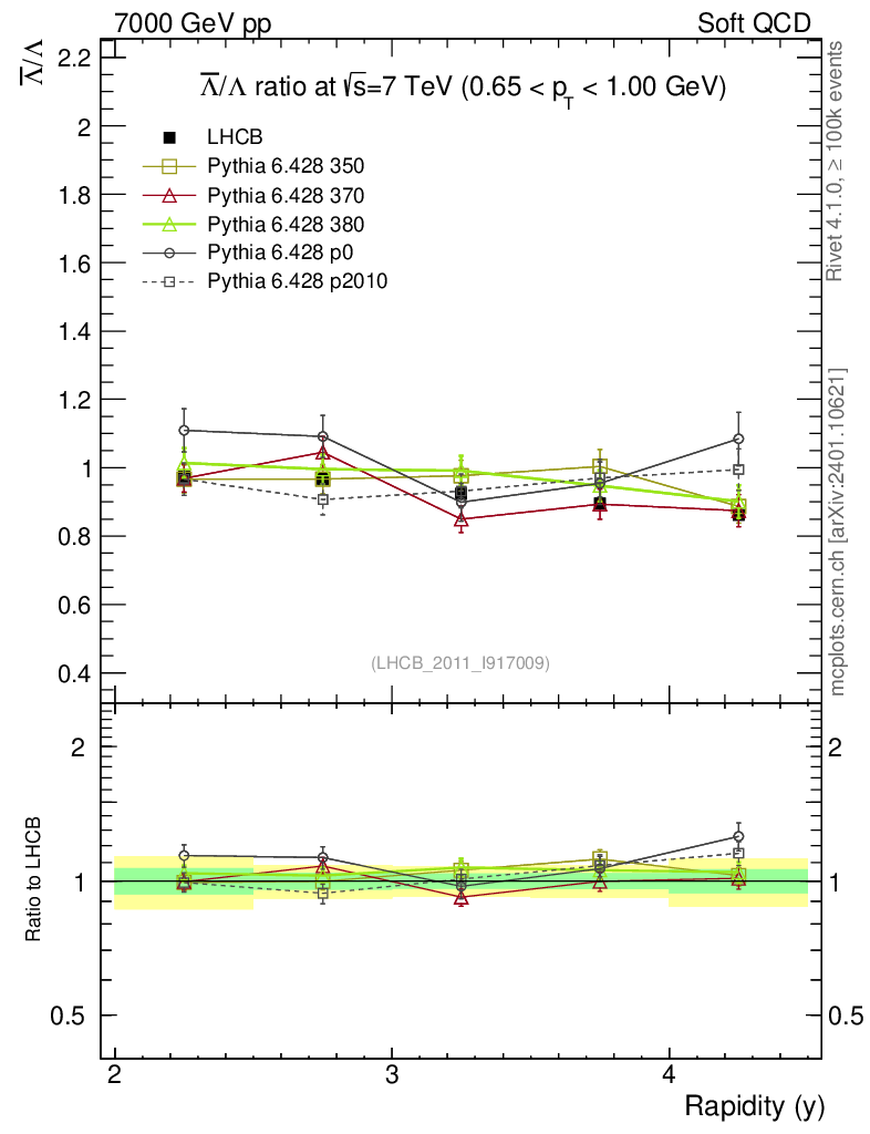 Soft QCD (inelastic) : Identified Particles : Ratios : Λbar/Λ vs |y|