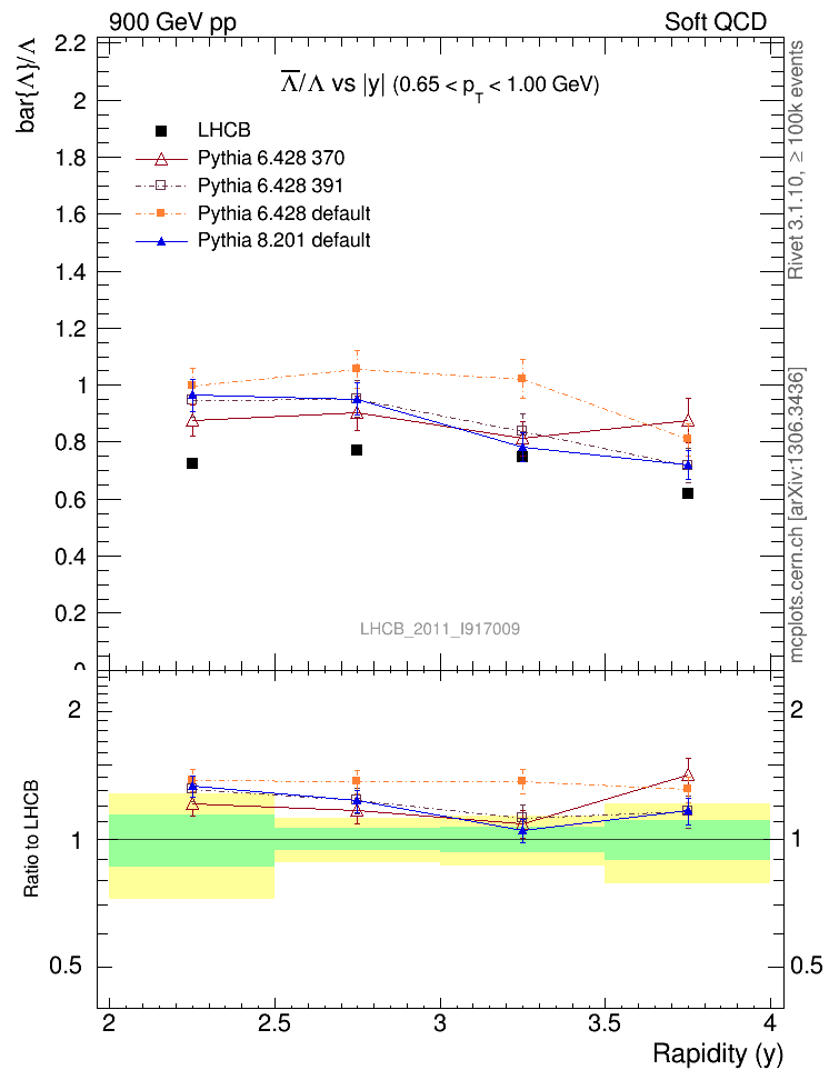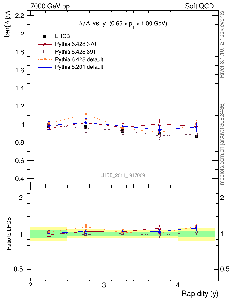 Soft QCD (inelastic) : Identified Particles : Ratios : Λbar/Λ vs |y|