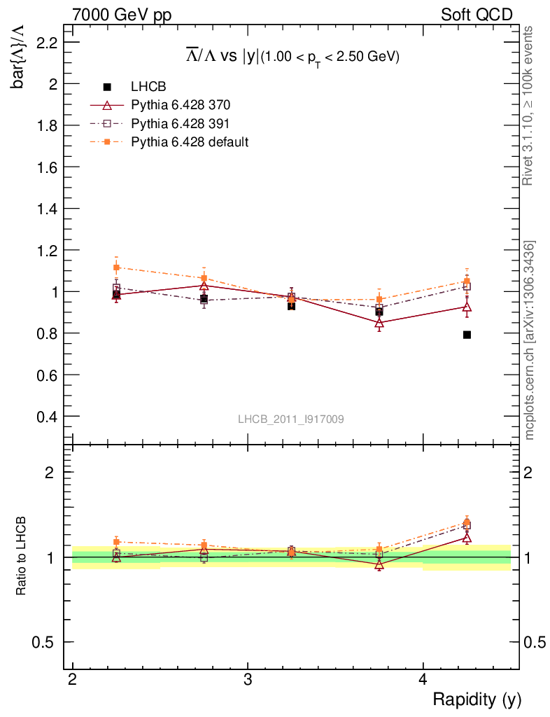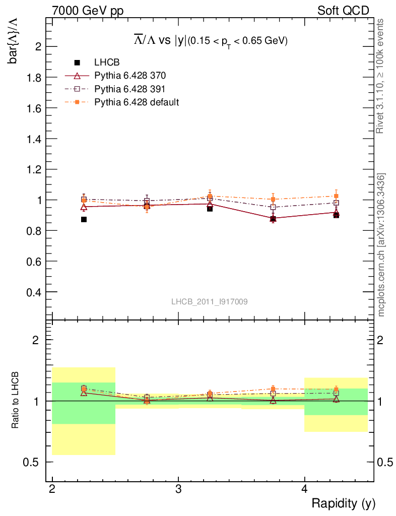 Soft QCD (inelastic) : Identified Particles : Ratios : Λbar/Λ vs |y|