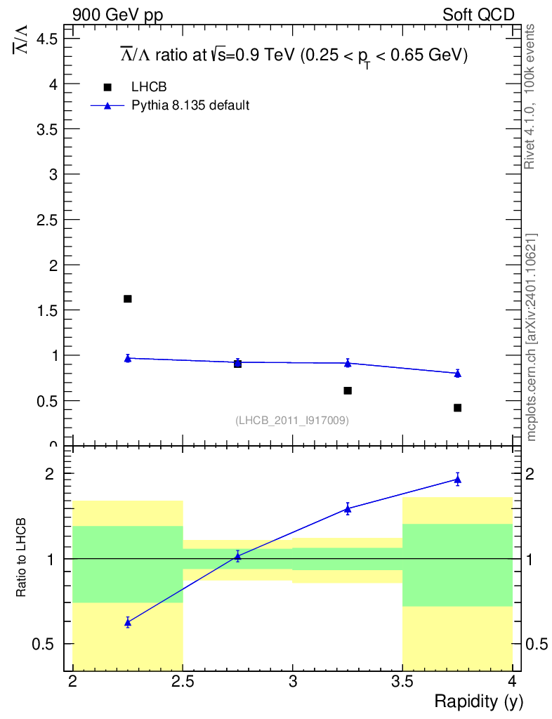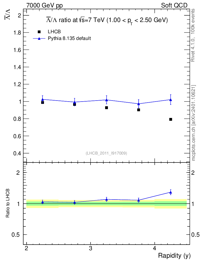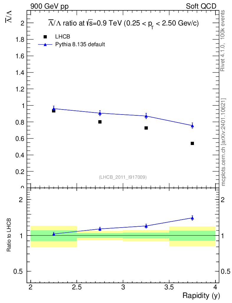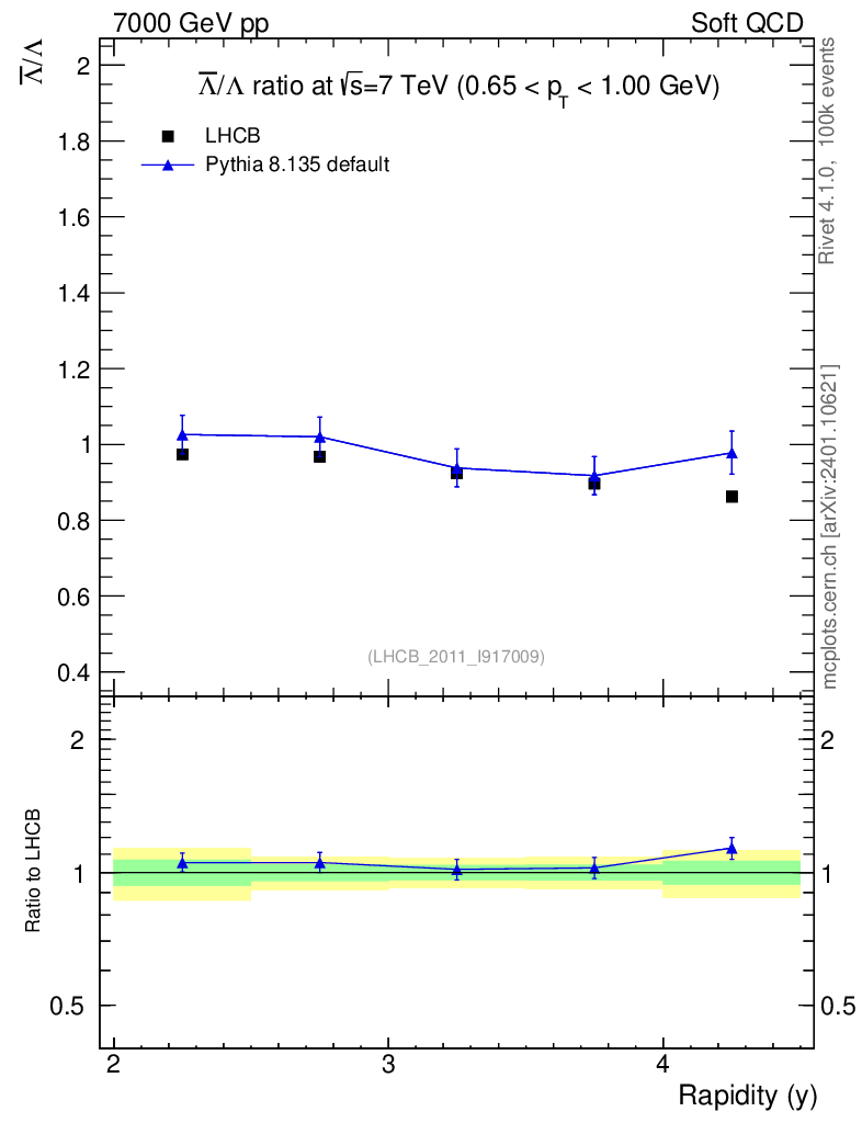 Soft QCD (inelastic) : Identified Particles : Ratios : Λbar/Λ vs |y|