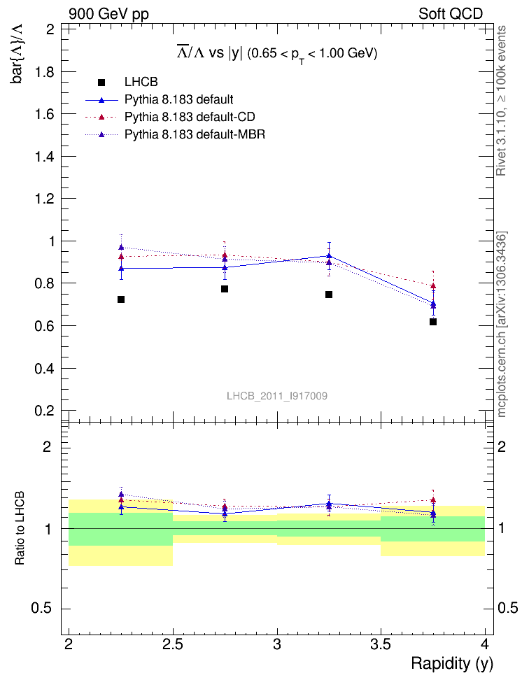 Soft QCD (inelastic) : Identified Particles : Ratios : Λbar/Λ vs |y|