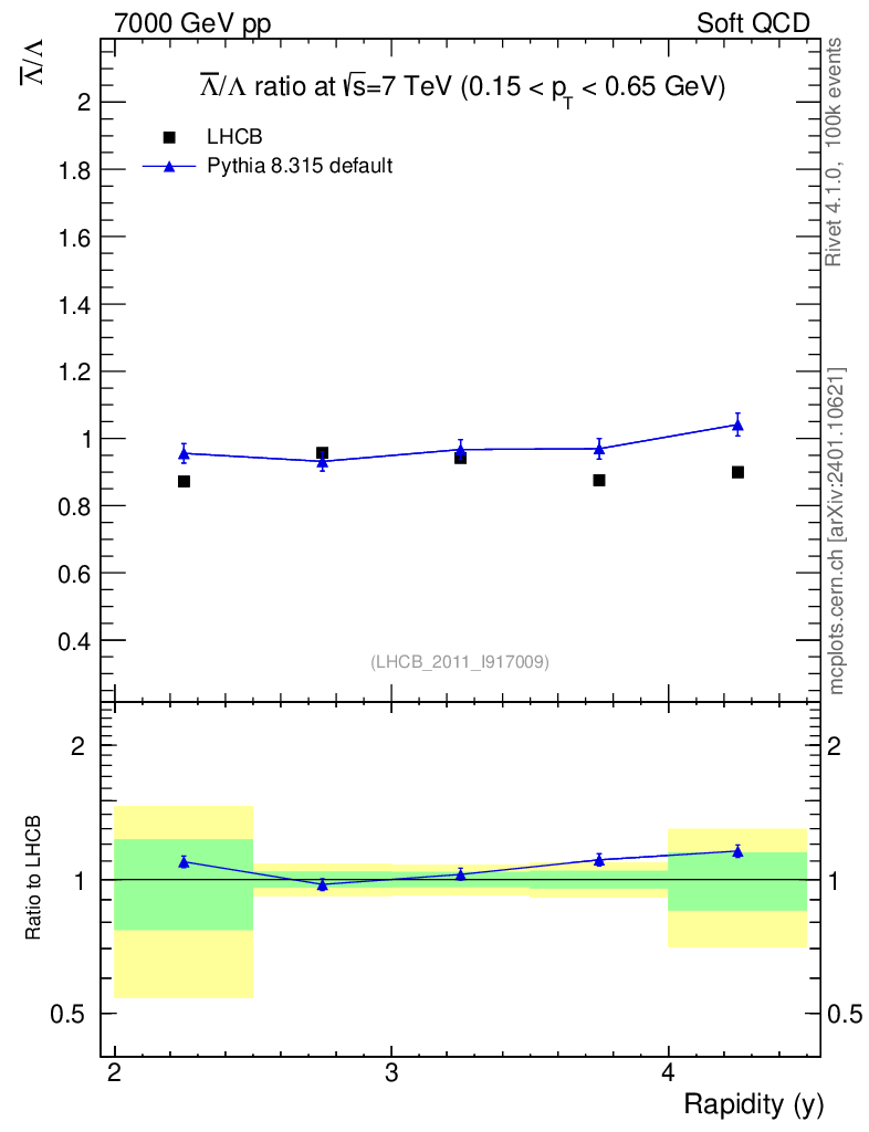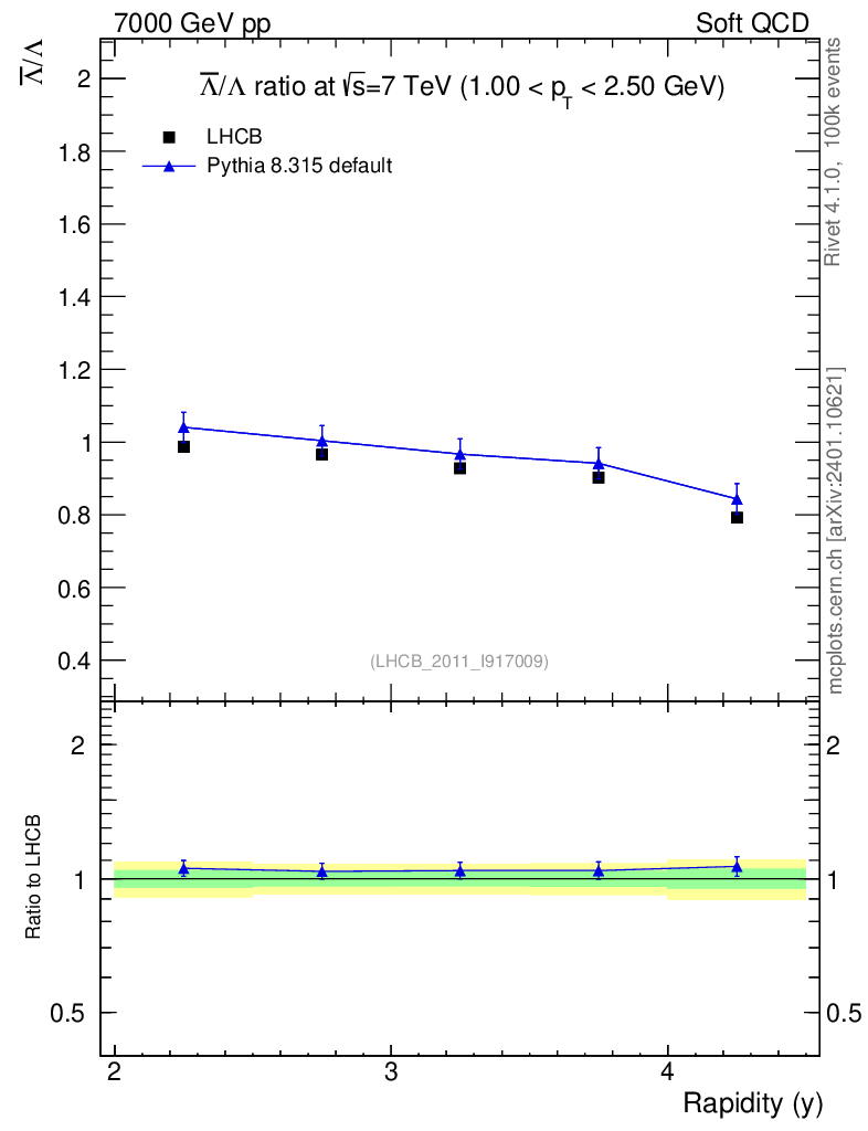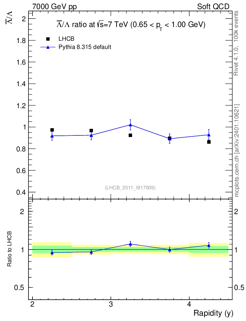 Soft QCD (inelastic) : Identified Particles : Ratios : Λbar/Λ vs |y|