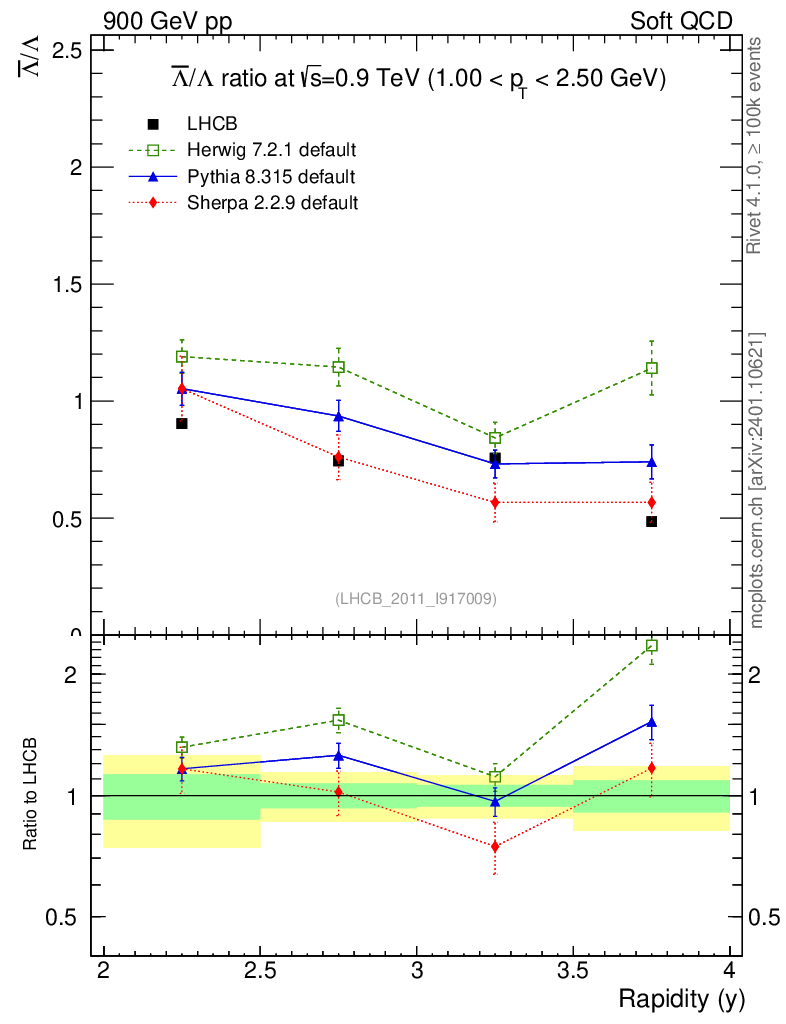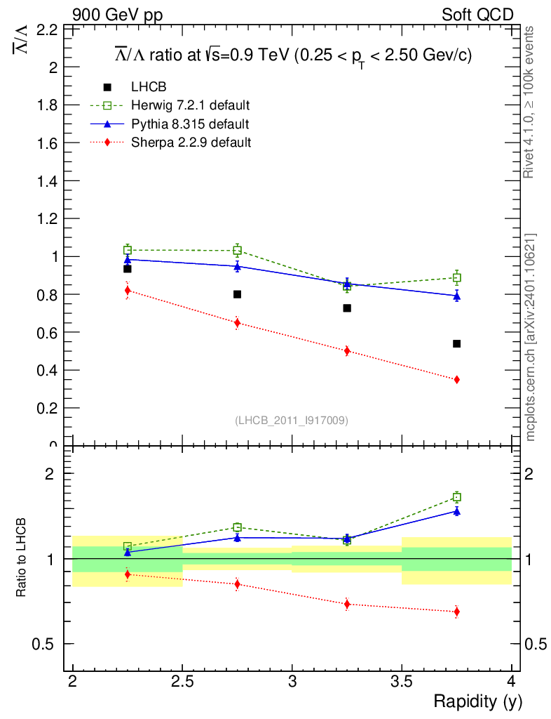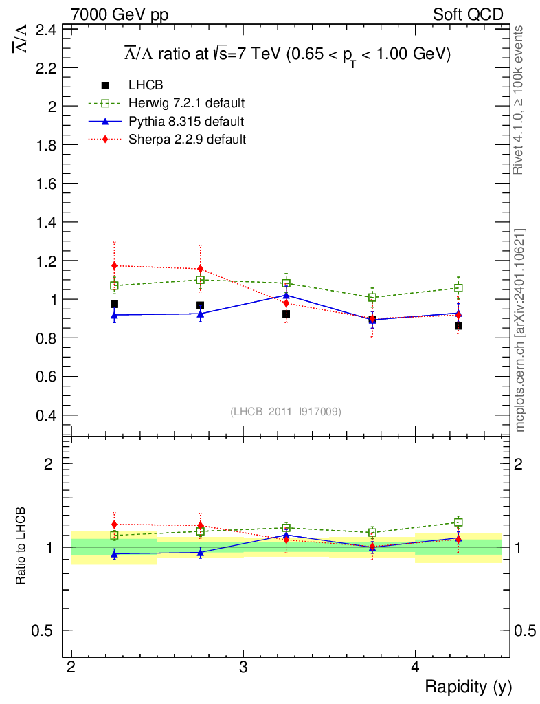 Soft QCD (inelastic) : Identified Particles : Ratios : Λbar/Λ vs |y|