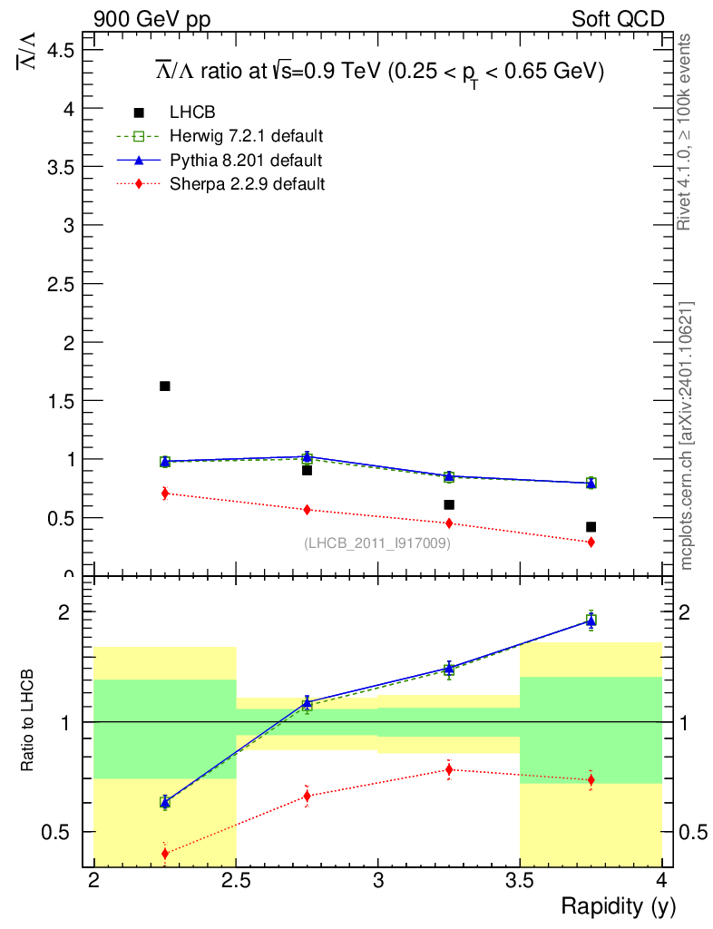 Soft QCD (inelastic) : Identified Particles : Ratios : Λbar/Λ vs |y|