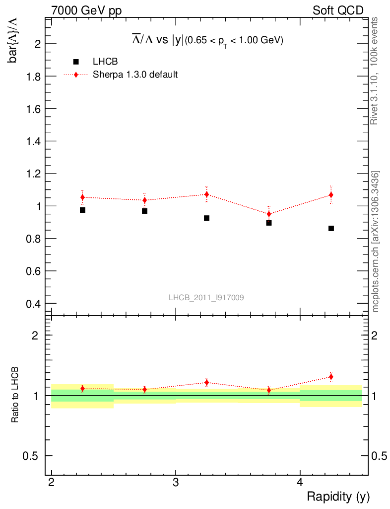 Soft QCD (inelastic) : Identified Particles : Ratios : Λbar/Λ vs |y|