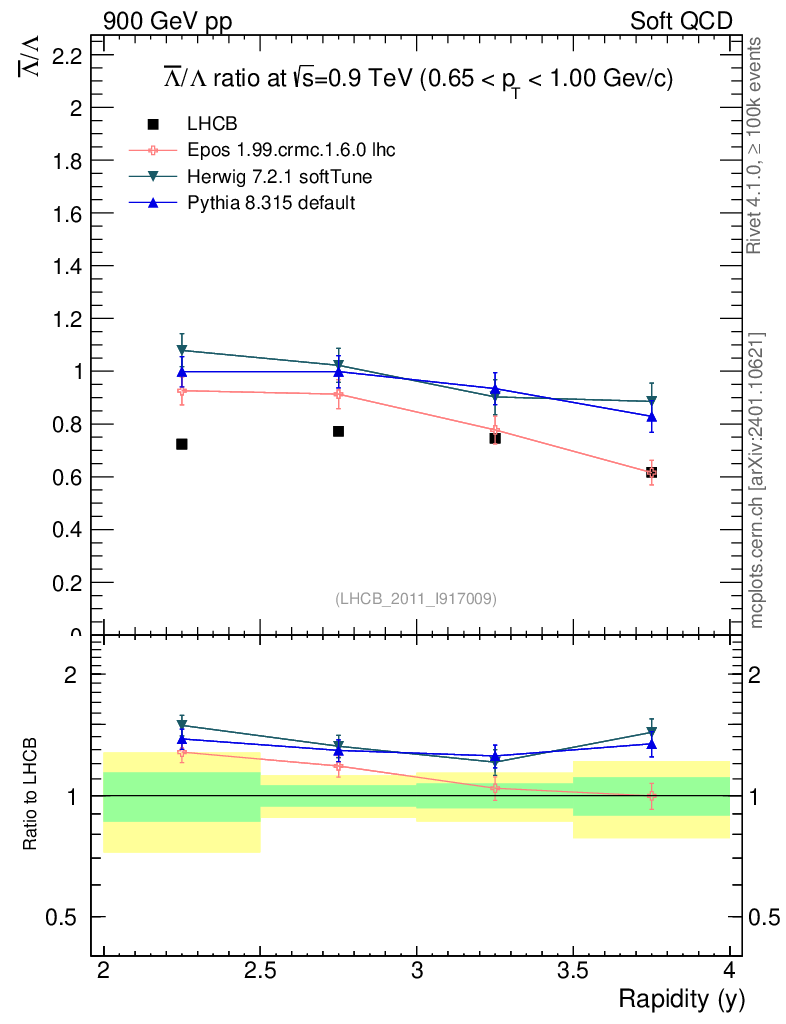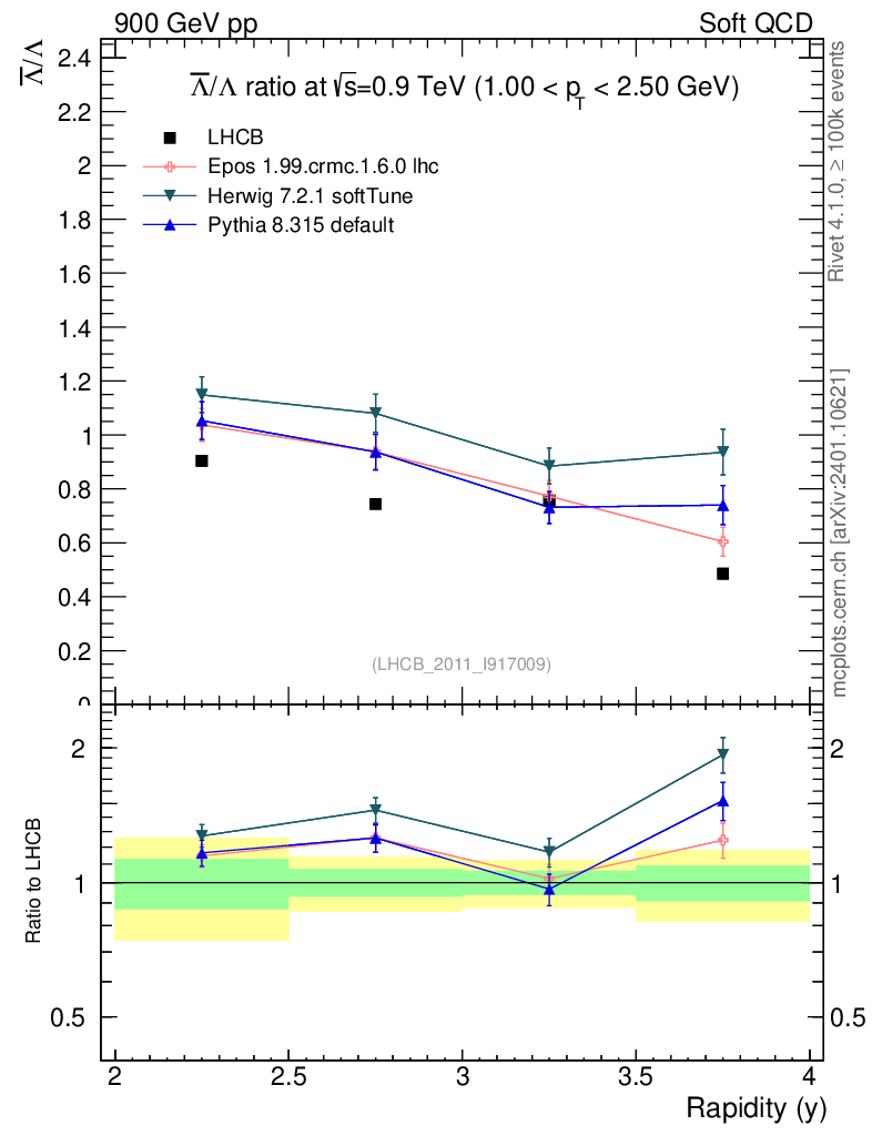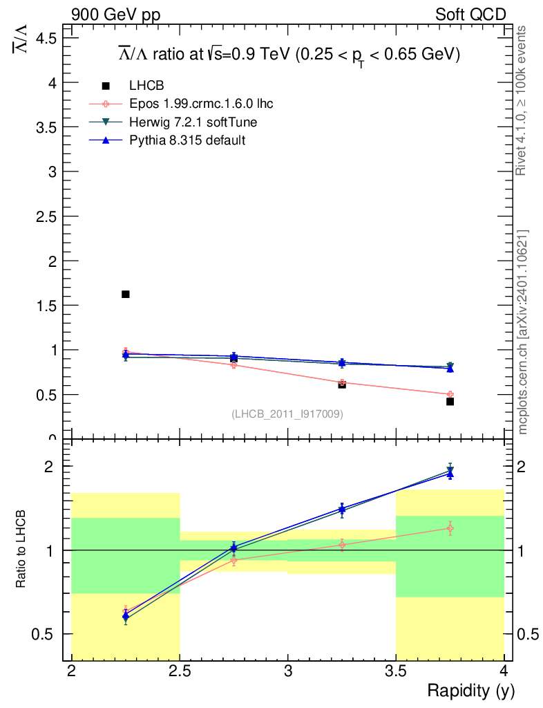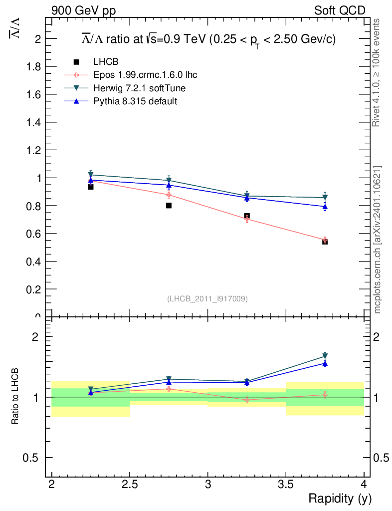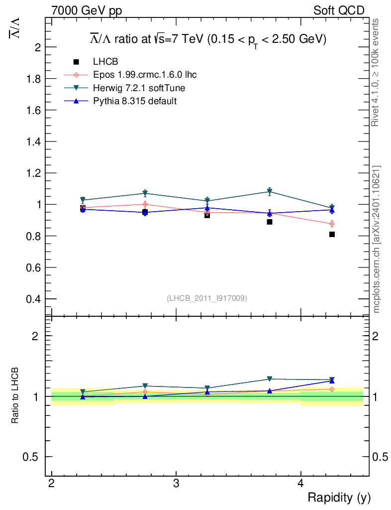 Soft QCD (inelastic) : Identified Particles : Ratios : Λbar/Λ vs |y|