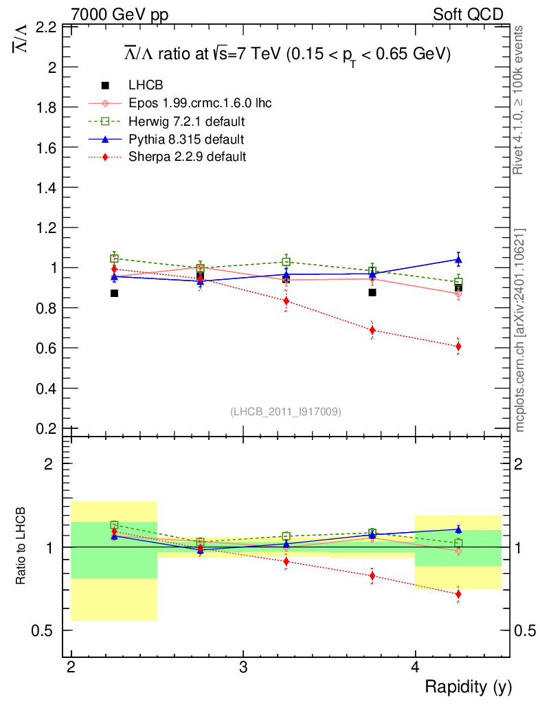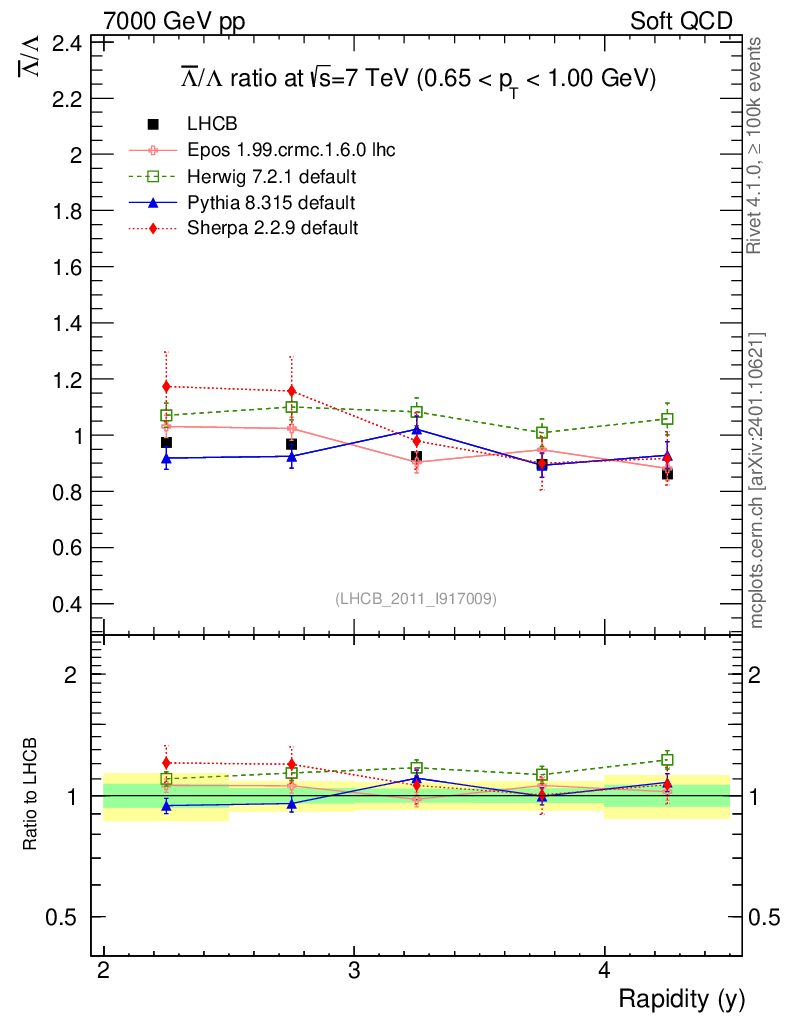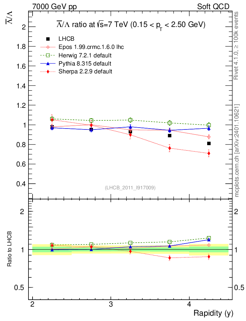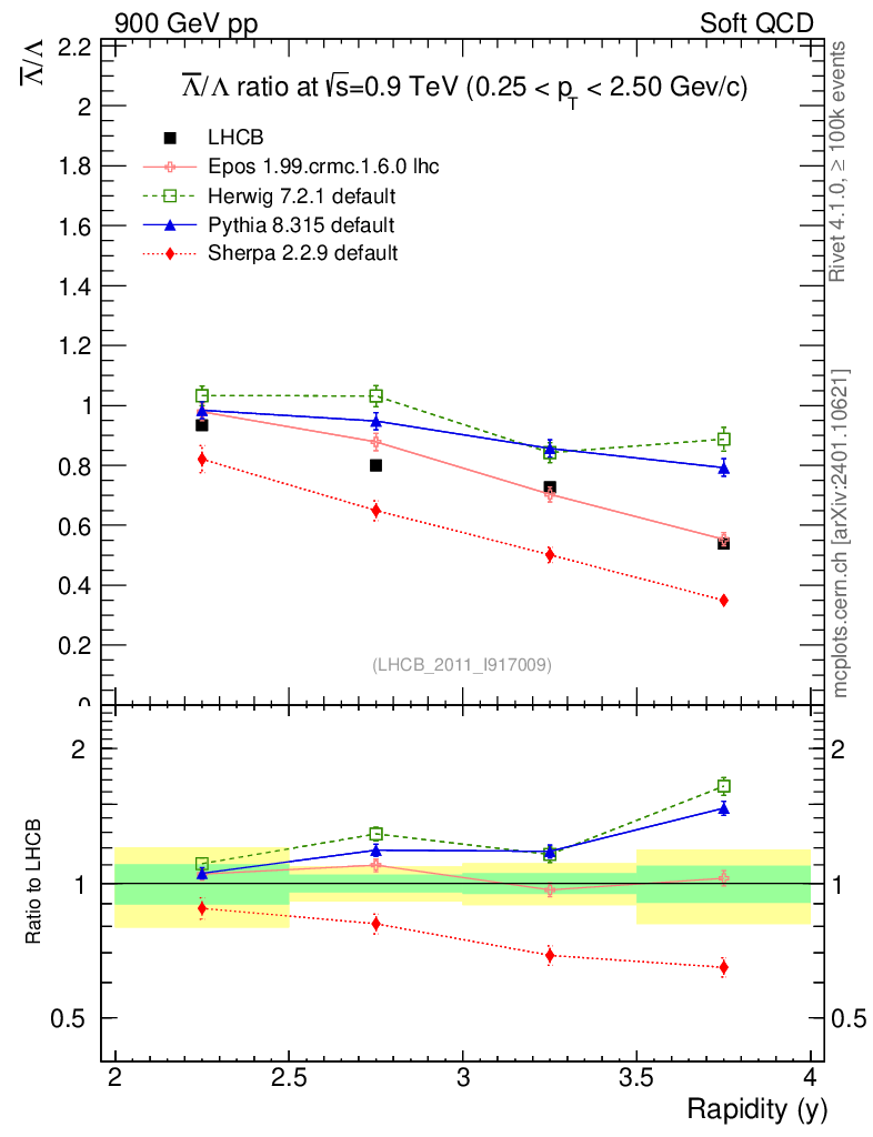 Soft QCD (inelastic) : Identified Particles : Ratios : Λbar/Λ vs |y|