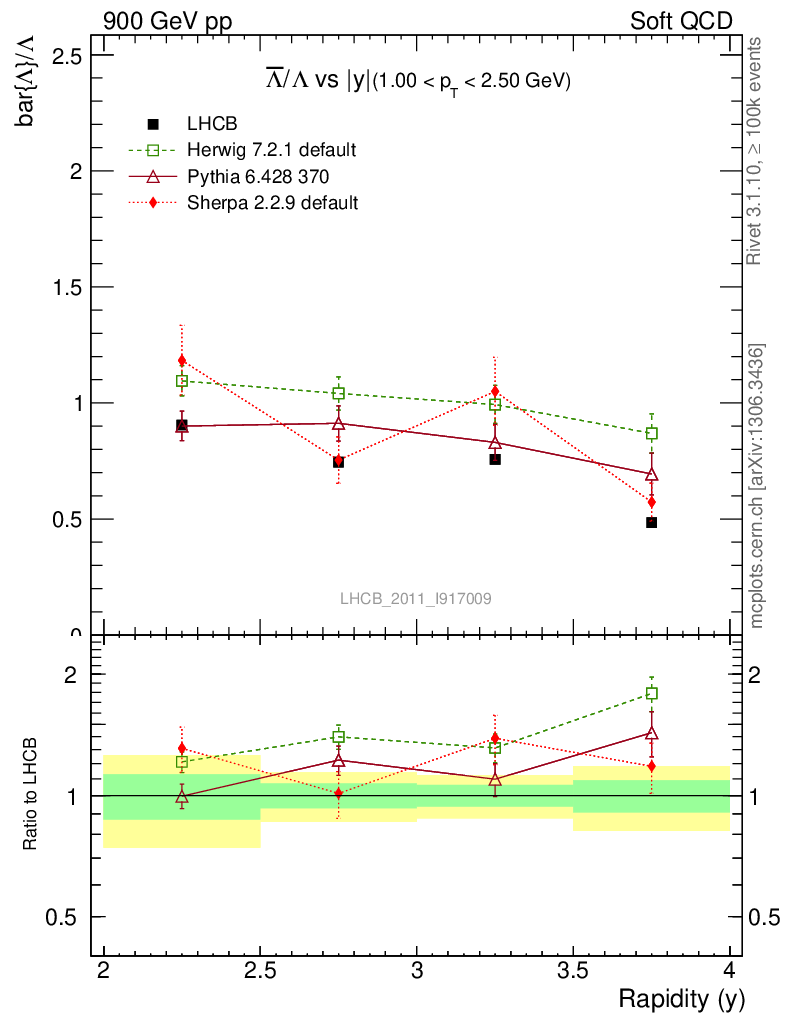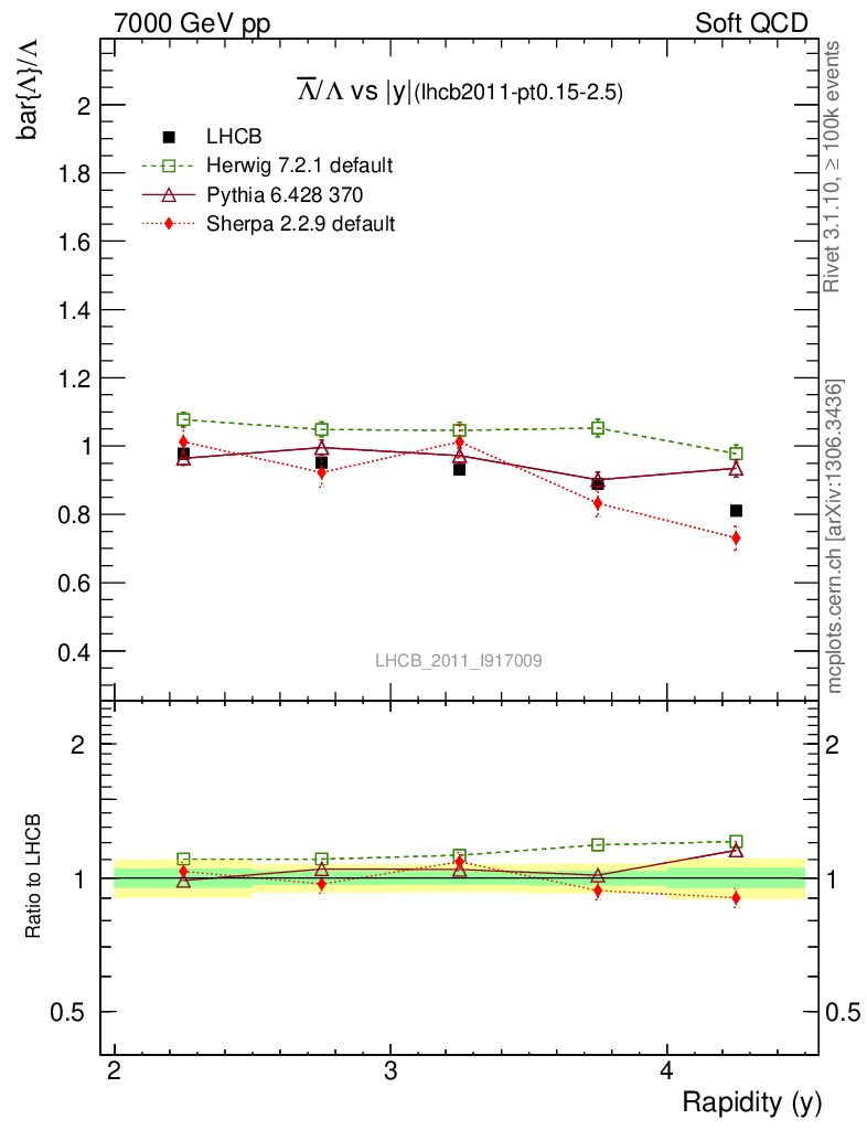 Soft QCD (inelastic) : Identified Particles : Ratios : Λbar/Λ vs |y|