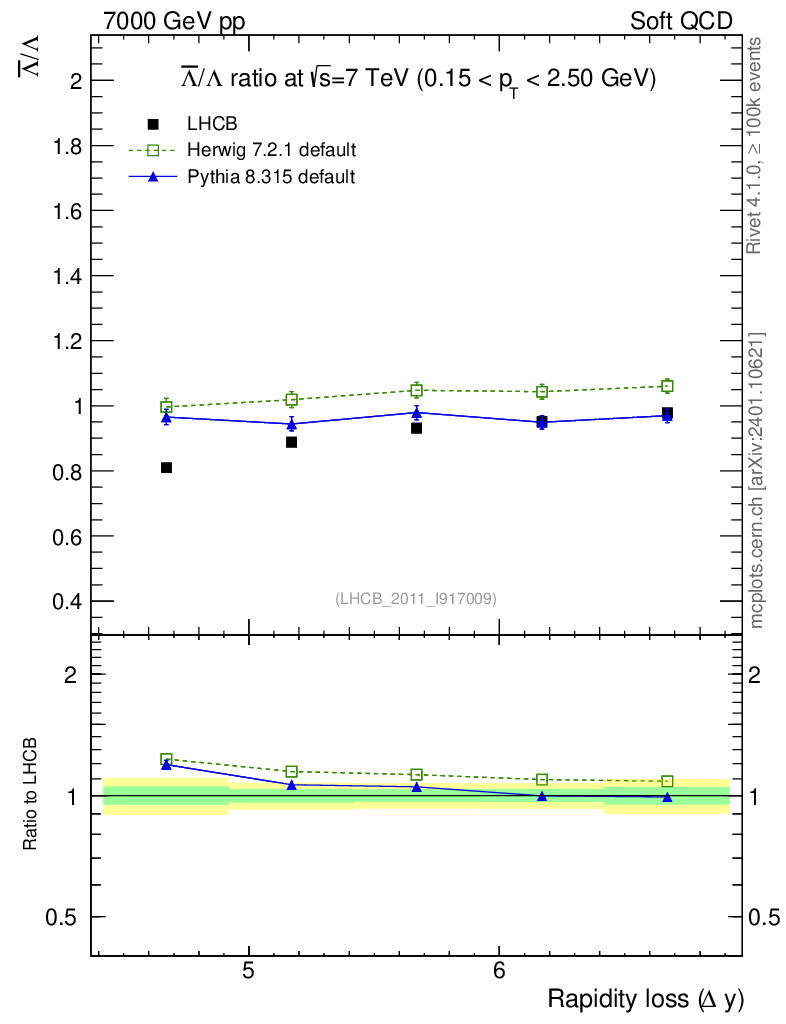 Soft QCD (inelastic) : Identified Particles : Ratios : Λbar/Λ vs |Δy|