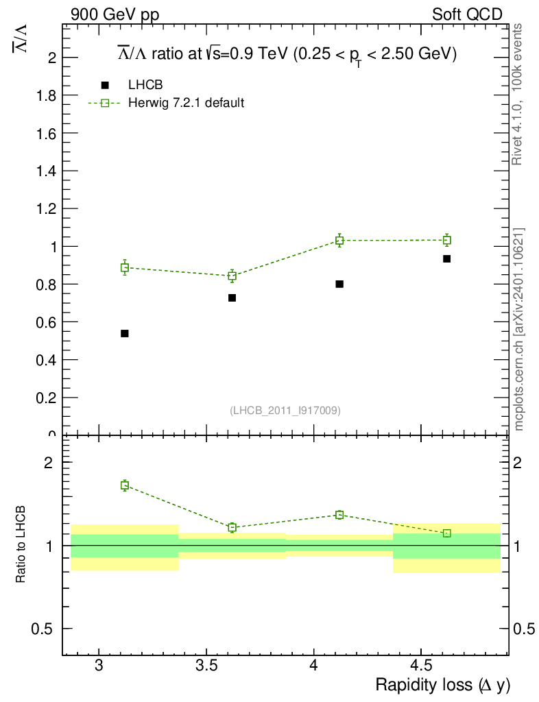 Soft QCD (inelastic) : Identified Particles : Ratios : Λbar/Λ vs |Δy|