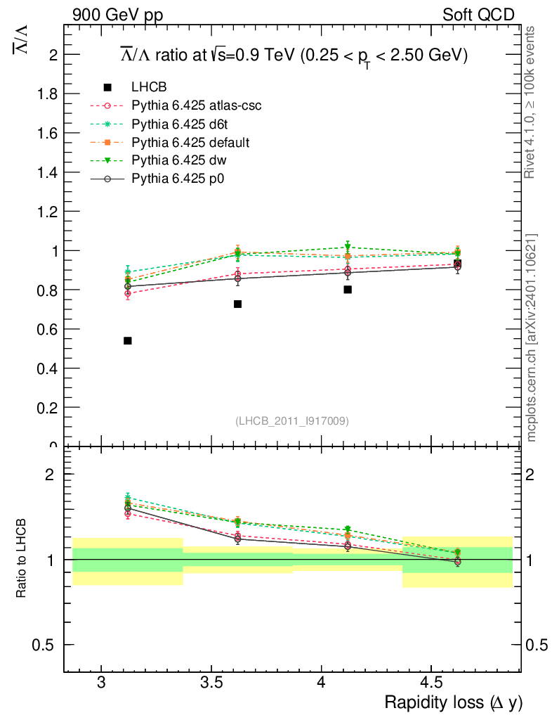 Soft QCD (inelastic) : Identified Particles : Ratios : Λbar/Λ vs |Δy|