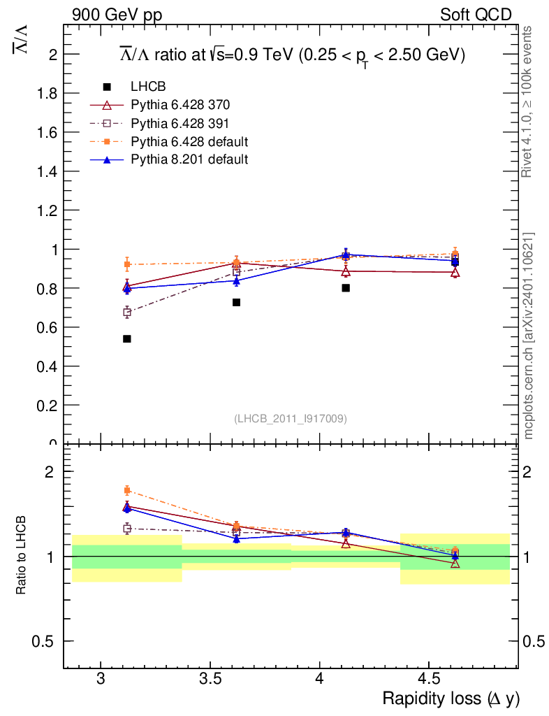 Soft QCD (inelastic) : Identified Particles : Ratios : Λbar/Λ vs |Δy|