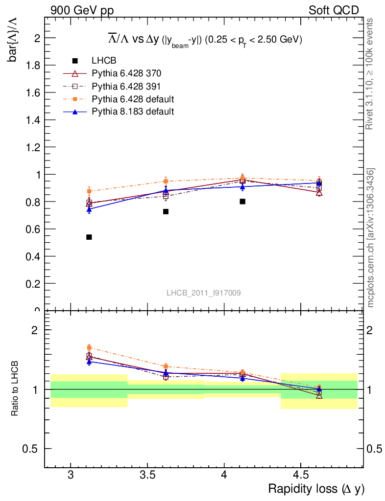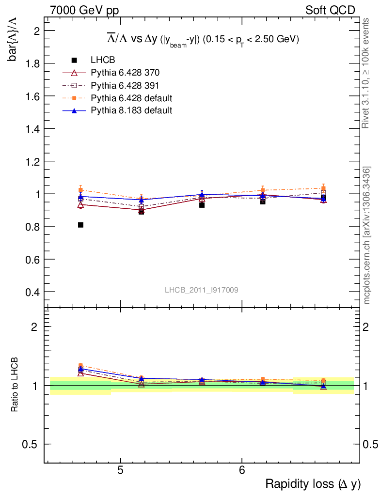Soft QCD (inelastic) : Identified Particles : Ratios : Λbar/Λ vs |Δy|