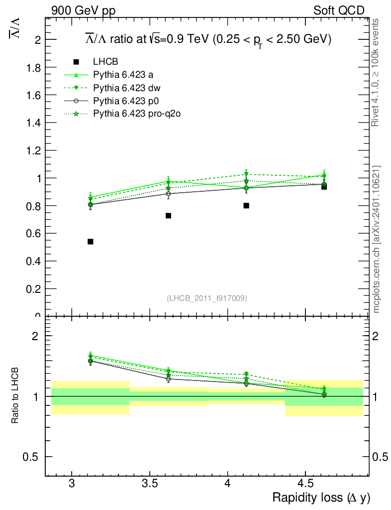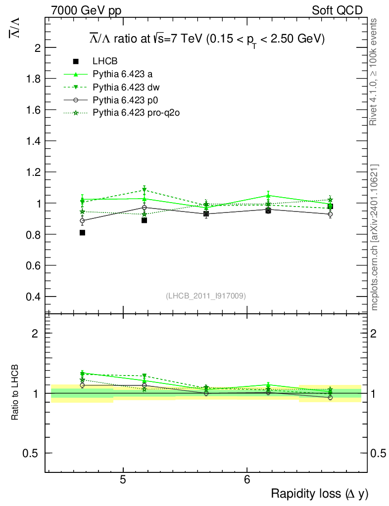 Soft QCD (inelastic) : Identified Particles : Ratios : Λbar/Λ vs |Δy|