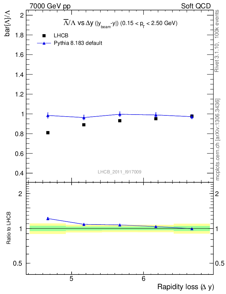 Soft QCD (inelastic) : Identified Particles : Ratios : Λbar/Λ vs |Δy|