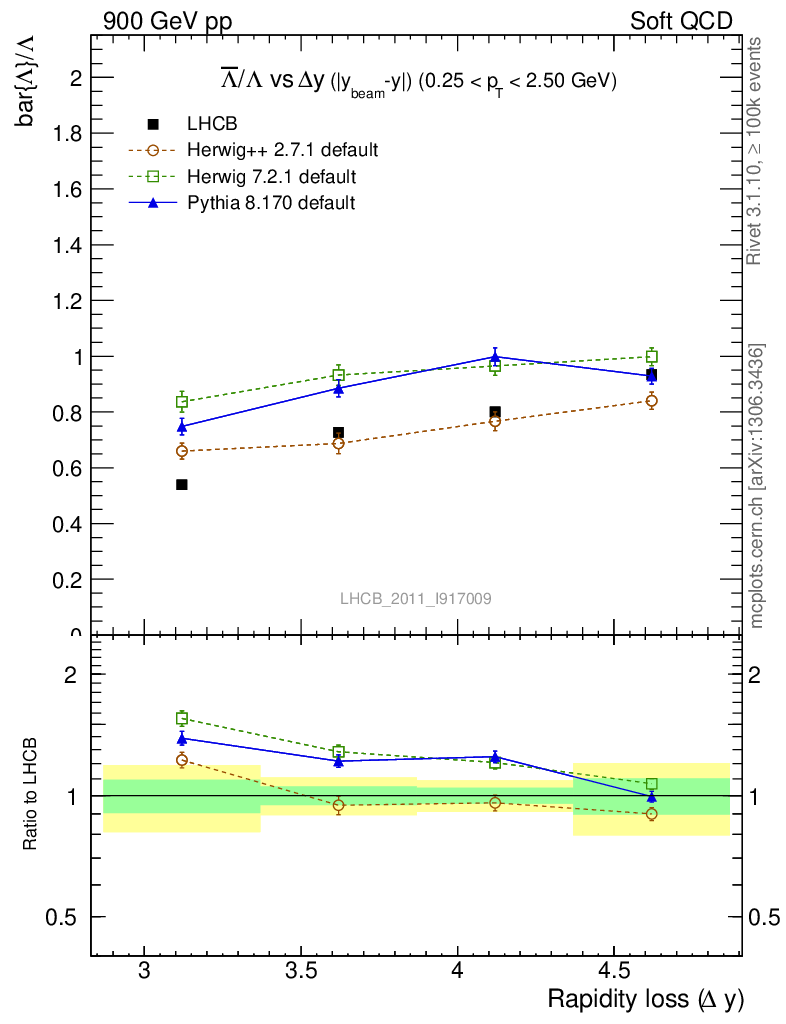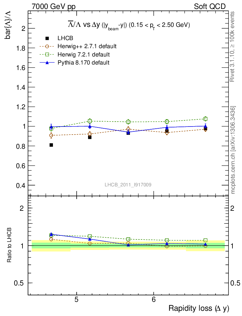 Soft QCD (inelastic) : Identified Particles : Ratios : Λbar/Λ vs |Δy|