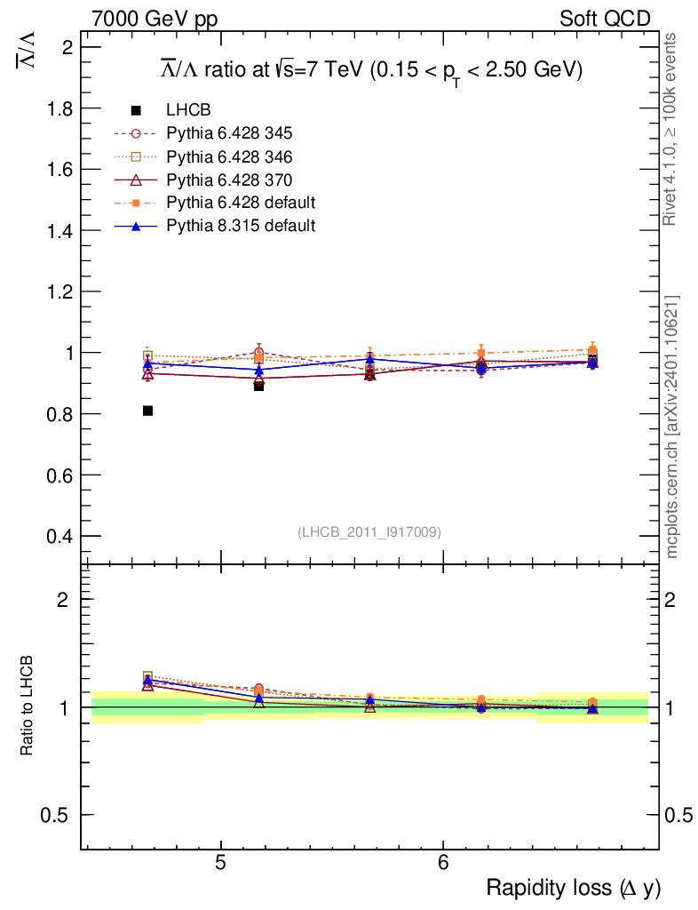 Soft QCD (inelastic) : Identified Particles : Ratios : Λbar/Λ vs |Δy|
