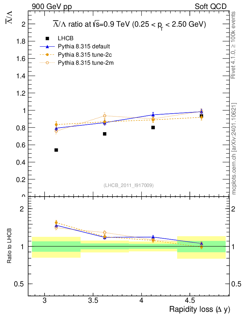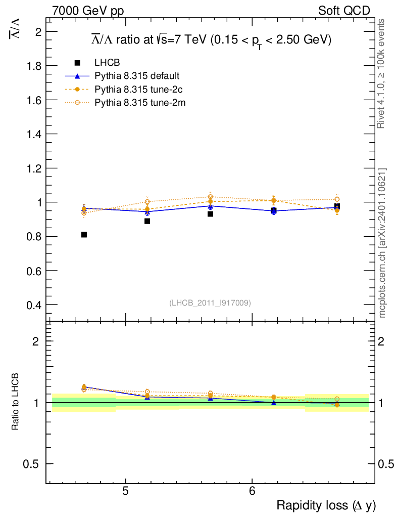 Soft QCD (inelastic) : Identified Particles : Ratios : Λbar/Λ vs |Δy|