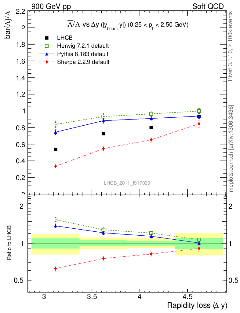 Soft QCD (inelastic) : Identified Particles : Ratios : Λbar/Λ vs |Δy|