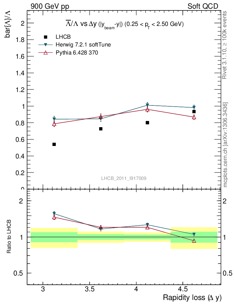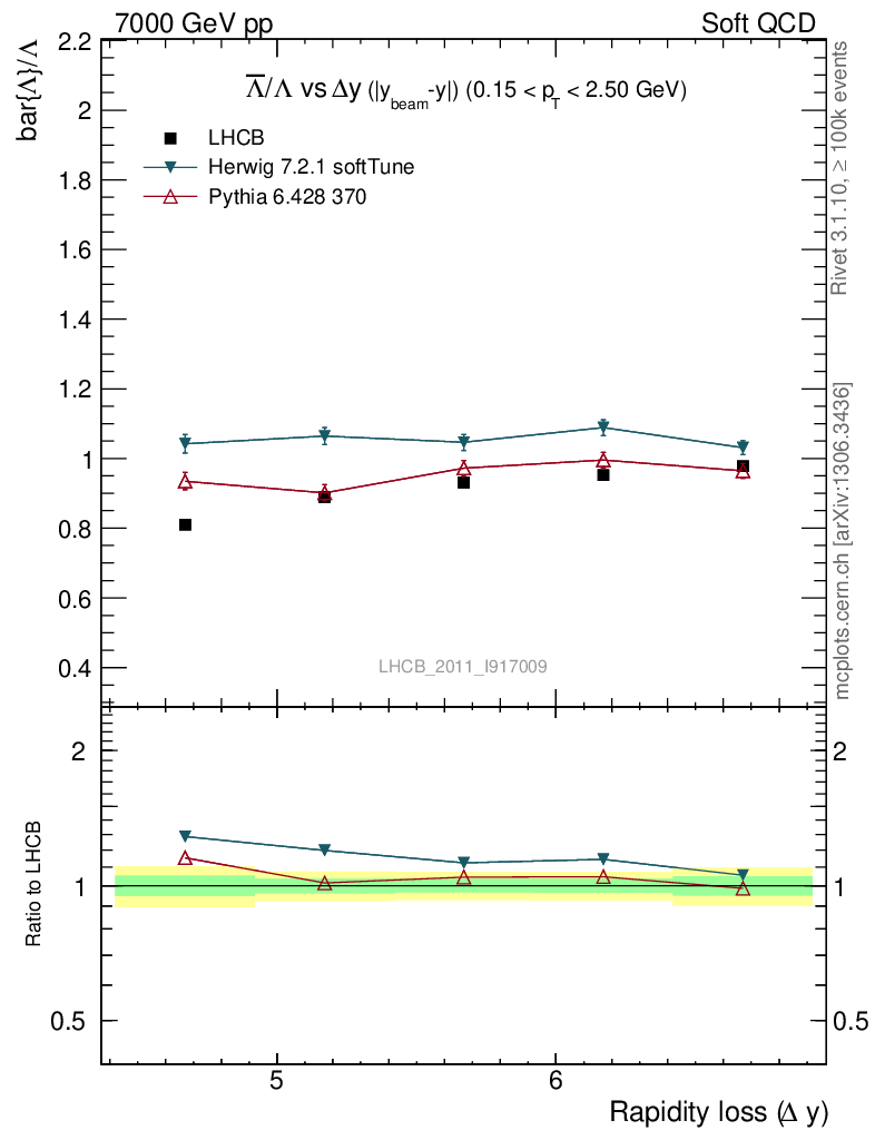 Soft QCD (inelastic) : Identified Particles : Ratios : Λbar/Λ vs |Δy|