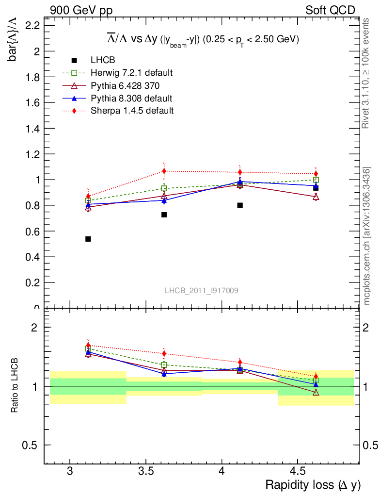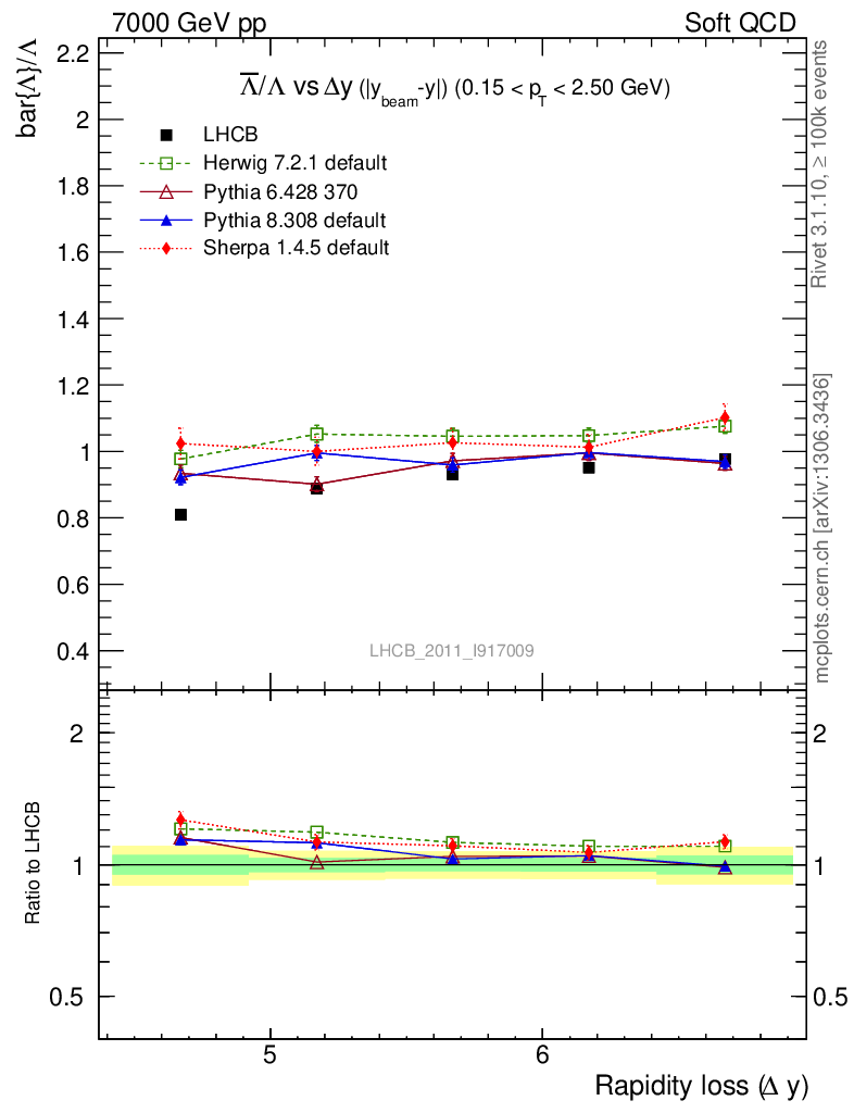 Soft QCD (inelastic) : Identified Particles : Ratios : Λbar/Λ vs |Δy|
