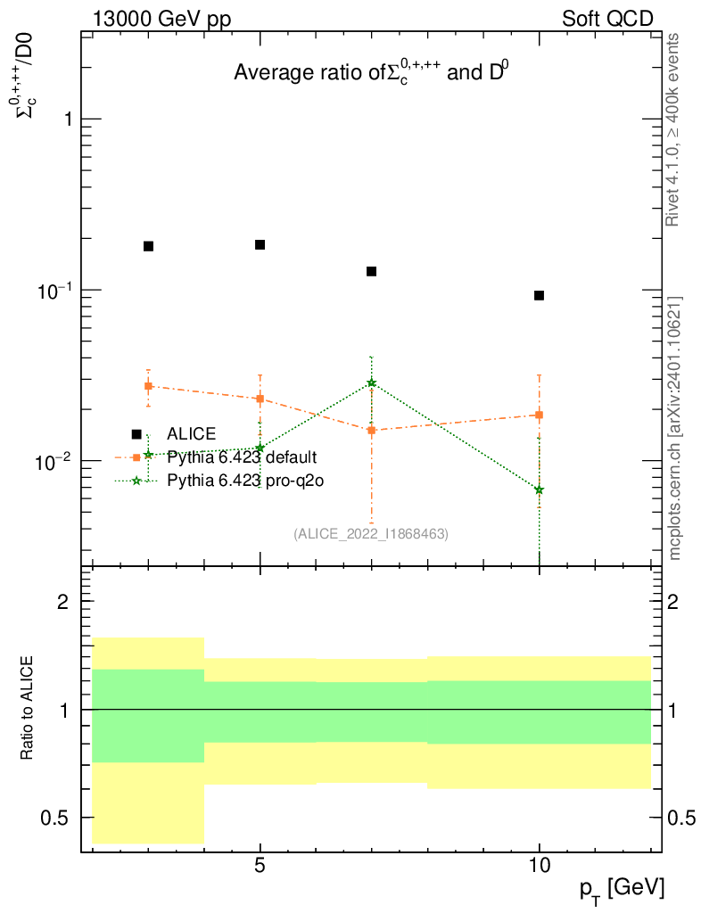 Soft QCD (inelastic) : Identified Particles : Ratios : Σc0,+,++/D0 vs pT
