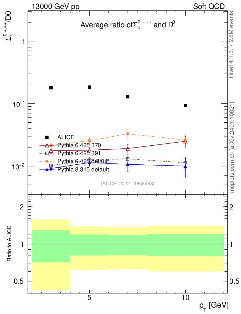 Soft QCD (inelastic) : Identified Particles : Ratios : Σc0,+,++/D0 vs pT