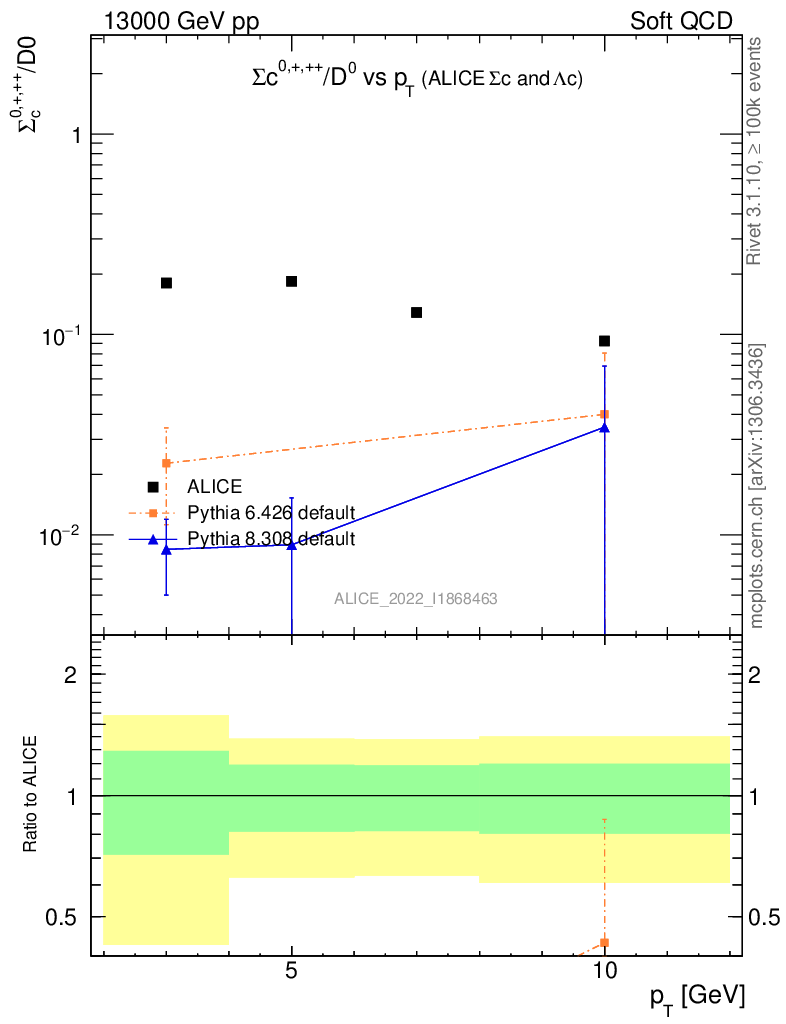 Soft QCD (inelastic) : Identified Particles : Ratios : Σc0,+,++/D0 vs pT