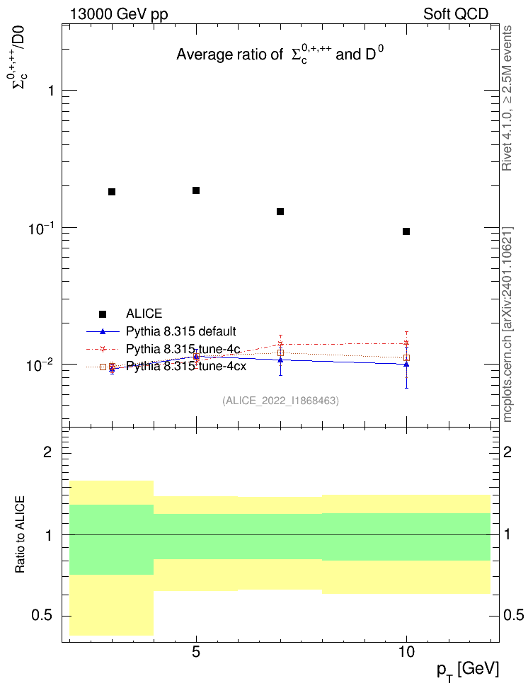 Soft QCD (inelastic) : Identified Particles : Ratios : Σc0,+,++/D0 vs pT