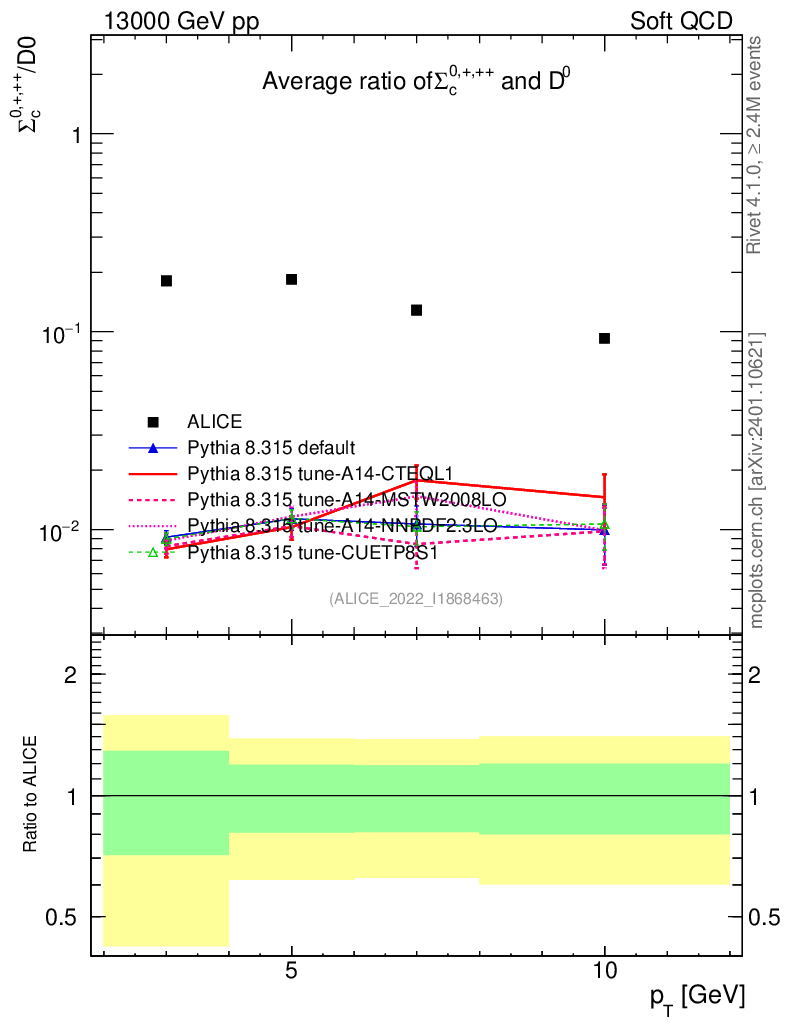 Soft QCD (inelastic) : Identified Particles : Ratios : Σc0,+,++/D0 vs pT