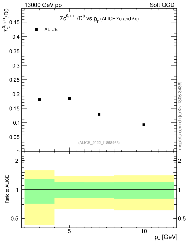 Soft QCD (inelastic) : Identified Particles : Ratios : Σc0,+,++/D0 vs pT