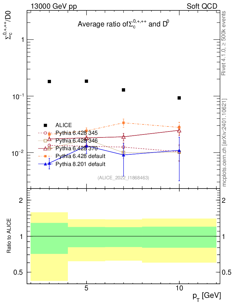 Soft QCD (inelastic) : Identified Particles : Ratios : Σc0,+,++/D0 vs pT